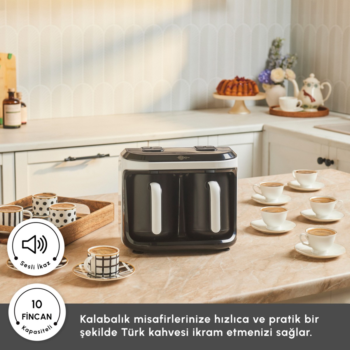 Karaca Hatır Hüp Düet Aroma Türk Kahve Makinesi, Közde Türk Kahvesi, Aromalı Türk Kahvesi White 10 Fincan Kapasiteli Bol Köpüklü