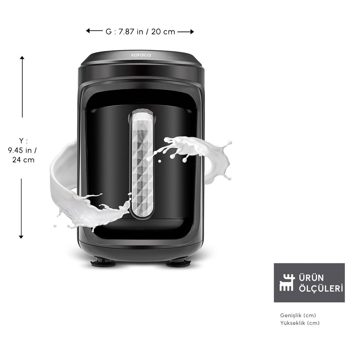 Karaca Hatır Hüps Quartz Közde Türk Kahvesi, Sütlü Türk Kahvesi, Sütlü İçecek Hazırlama Makinesi 5 Fincan Kapasiteli Bol Köpüklü Black Chrome
