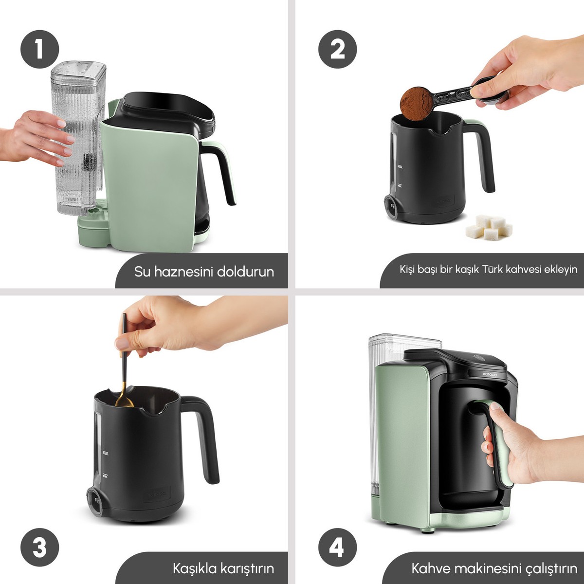 Karaca Hatır Otomatik Su Alma Hazneli Türk Kahve Makinesi Cabbage Green