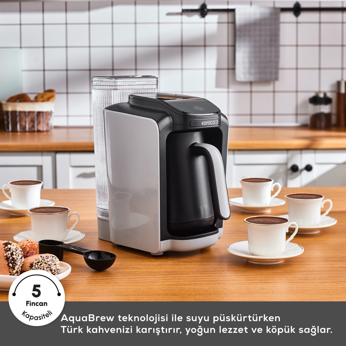 Hatır Su, AquaBrew teknolojisi ise su püskürtürken Türk kahvenizi mükemmel şekilde karıştırır, yoğun bir lezzet ve krema gibi köpük elde etmenizi sağlar.
