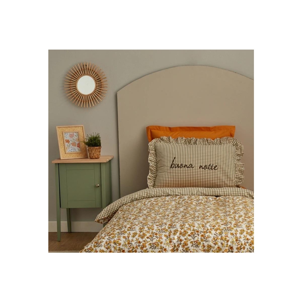 Kumaş kaliteli, desenleri güzel tam istediğimiz gibi oldu kızımız için 100×200 yatağına aldık bu şekilde durdu.
