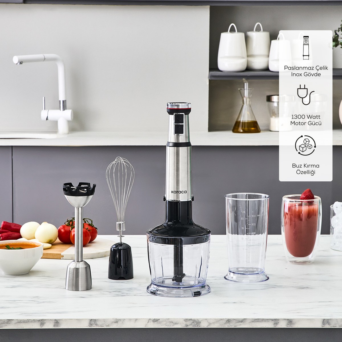 Karaca Inox Quick Mix Hız Ayarlı 1300W El Blender Set – 9637B
