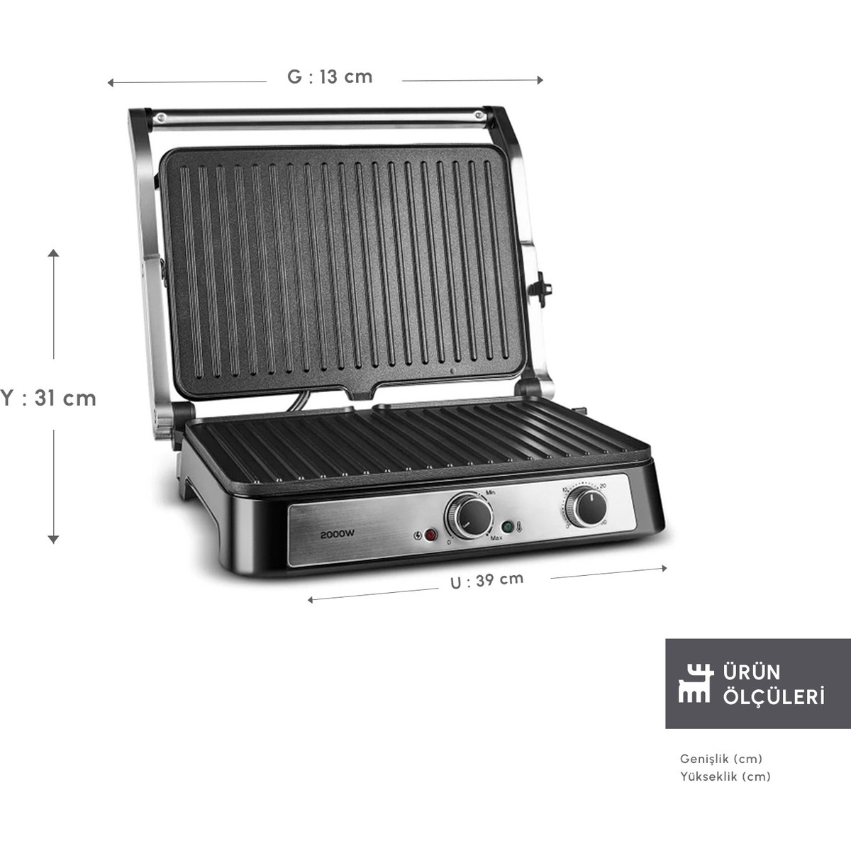 - 2000 watt gücü ve ızgara özelliği ile lezzetli tost, et, tavuk veya sebzelerinizi hızlıca hazırlayabilirsiniz.