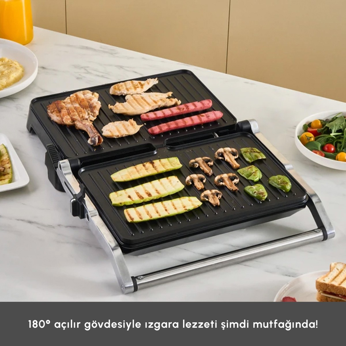- 6 dilim ekmek kapasitesi ve 180 derece açılabilir gövdesi ile ızgaralarınızı istediğiniz şekilde pişirebilir, aile boyu kullanım sağlayabilirsiniz.
