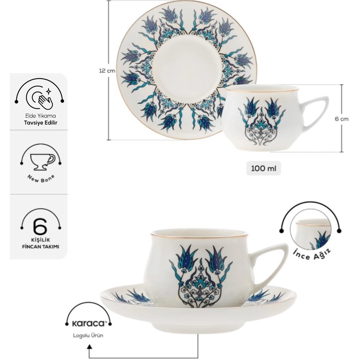 ☕ Karaca İznik Yeni Form 6 Kişilik Kahve Fincanı Takımı