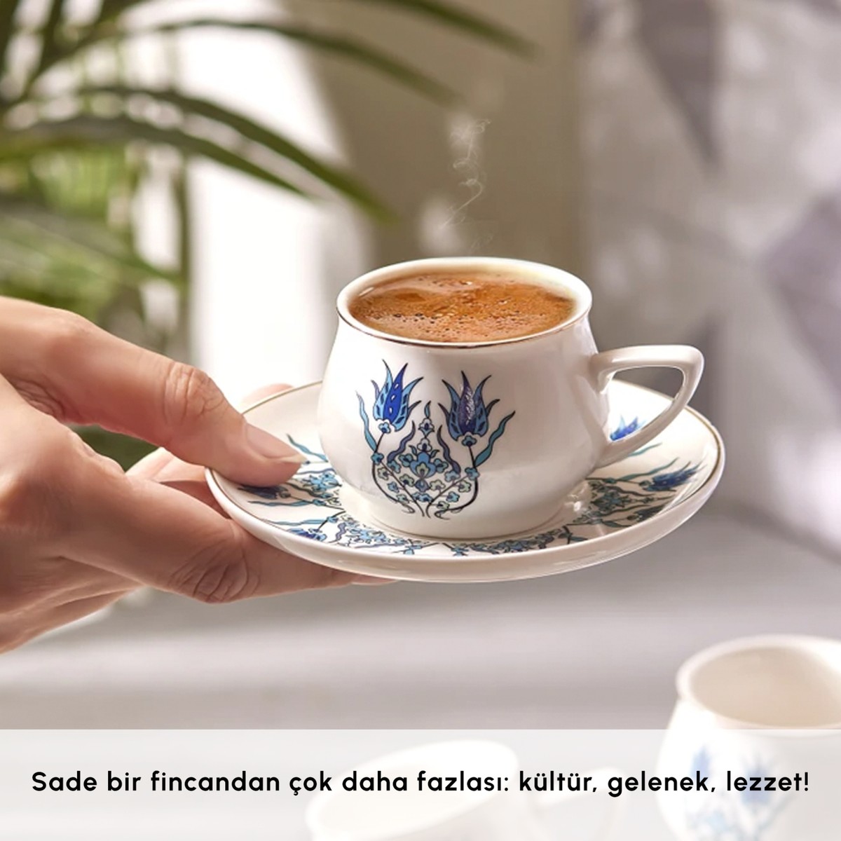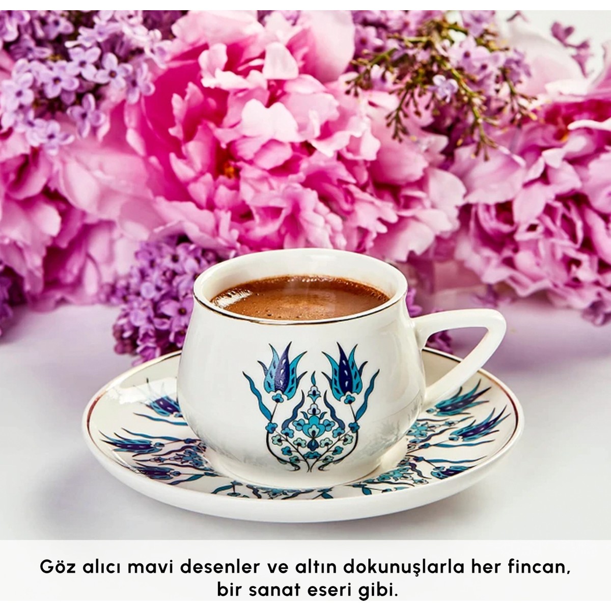 Her fincanda İznik ruhunu hissedeceğiniz canlı desenler yer alır. Yeni form tasarımı ile daha konforlu tutuş ve dengeli içim deneyimi sunar. Misafirleriniz için dikkat çeken bir sunum, kendiniz için ise keyif dolu bir sohbet eşlikçisi olur.