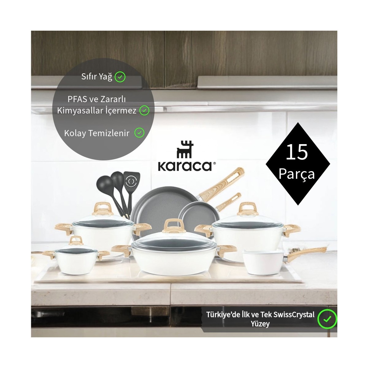 - Türkiye’de İlk ve Tek SwissCrystal Yüzey: Türkiye’nin, swiss kristalleri ile üretilen ilk ve tek tencere seti Karaca SwissCrystal Tencere Seti, üstün yapışmaz özelliğe sahiptir.