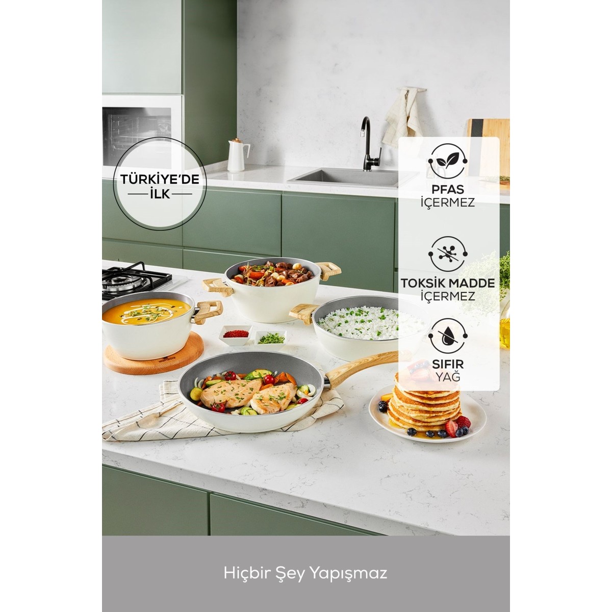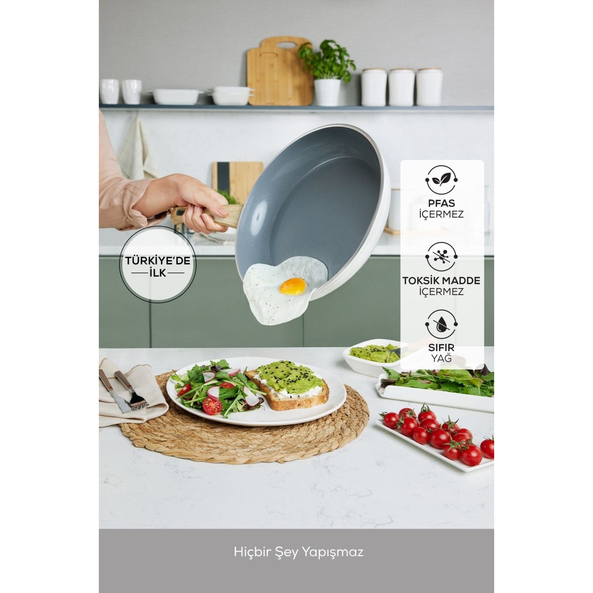 - PFAS ve Zararlı Kimyasallar İçermez: Swiss kristallerden oluşan yapışmaz yüzeyi; insan sağlığını tehlikeye sokan “PFAS” gibi zararlı kimyasal maddeler içermez.