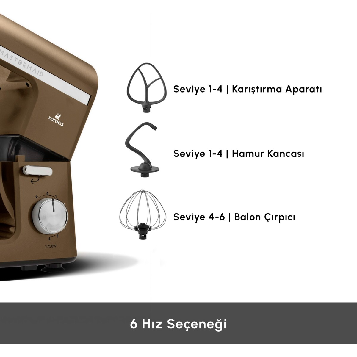 Karaca Mastermaid Chef Pro Çift Kollu 1750 W Stand Mikser – Ceviz Kahverengi, Yüksek Güçlü ve Dayanıklı Mutfak Yardımcısı
