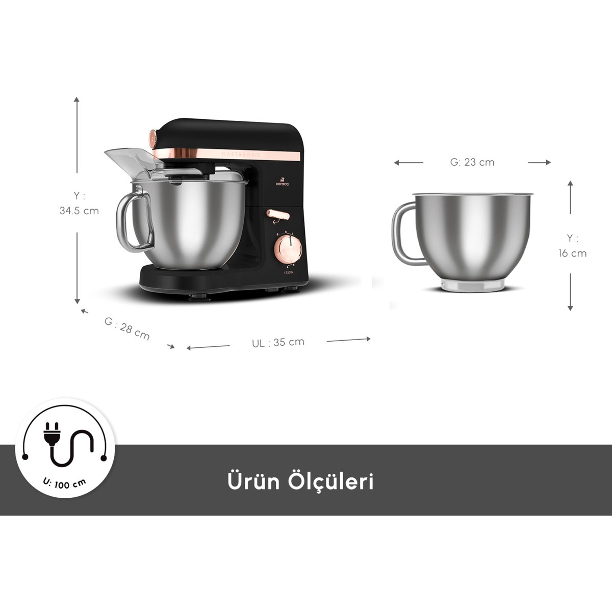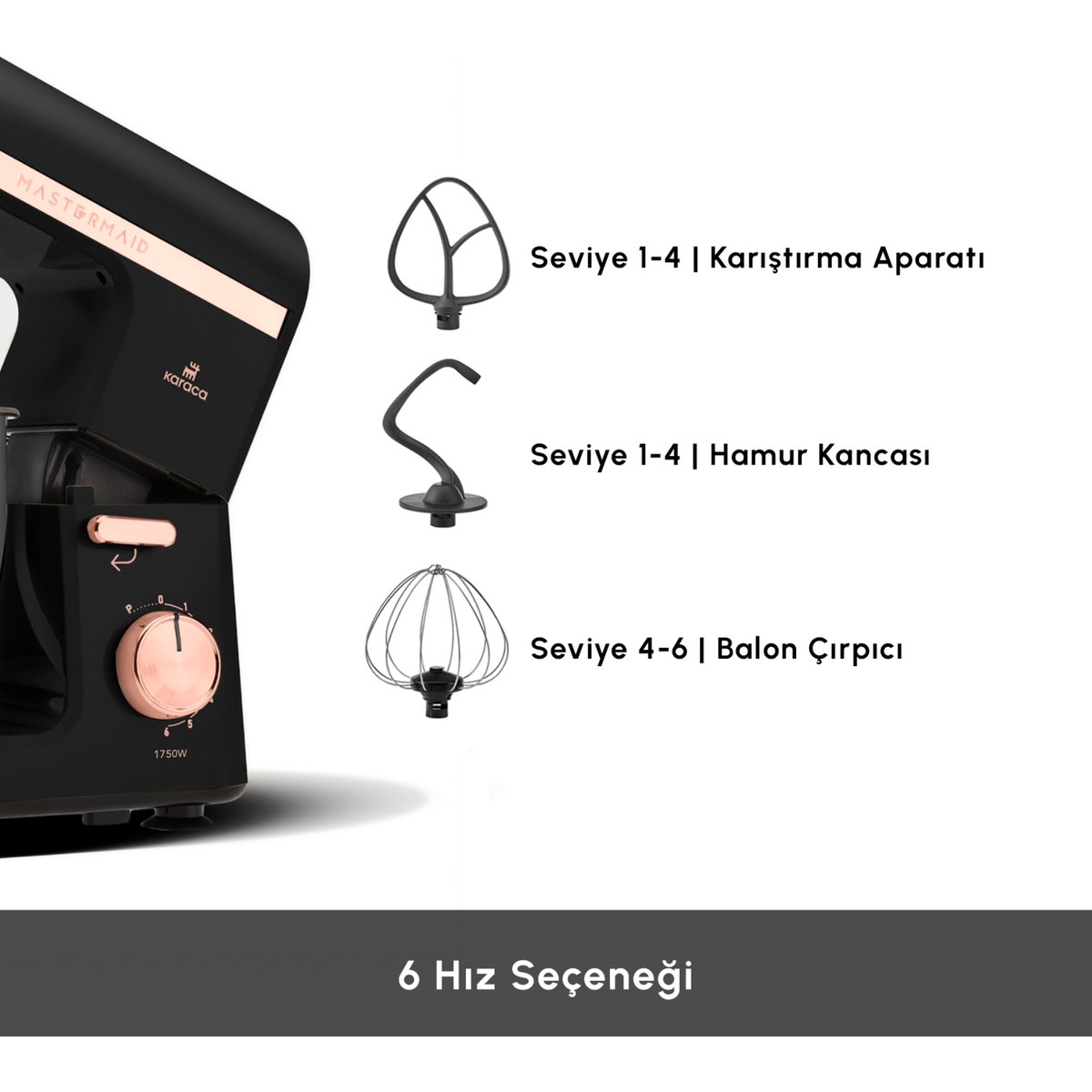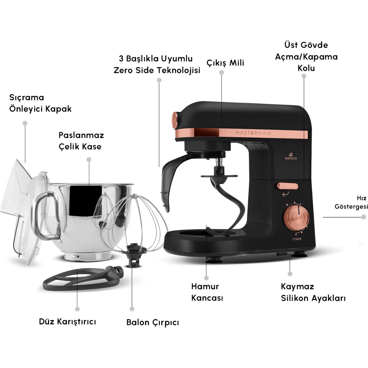 Karaca Mastermaid Chef Pro Çift Kollu Stand Mikser Matte Black Copper 1750 W