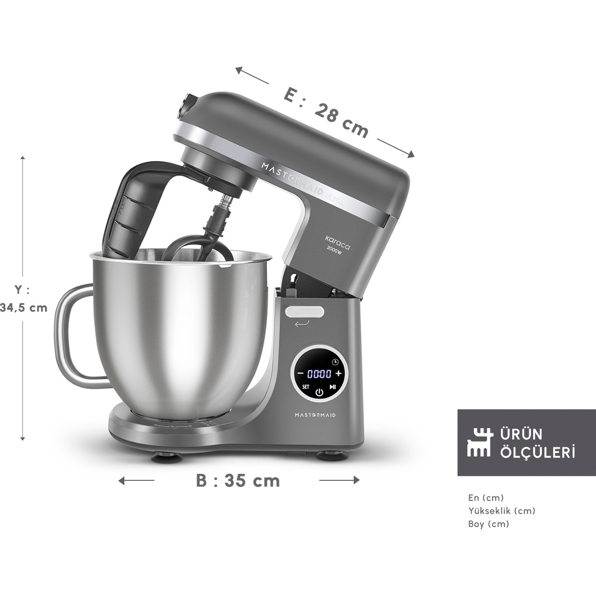 Karaca Mastermaid Chef Ultra D2000W Dijital Ekranlı Hamur Yoğurma Makinesi Galaxy Grey 7L