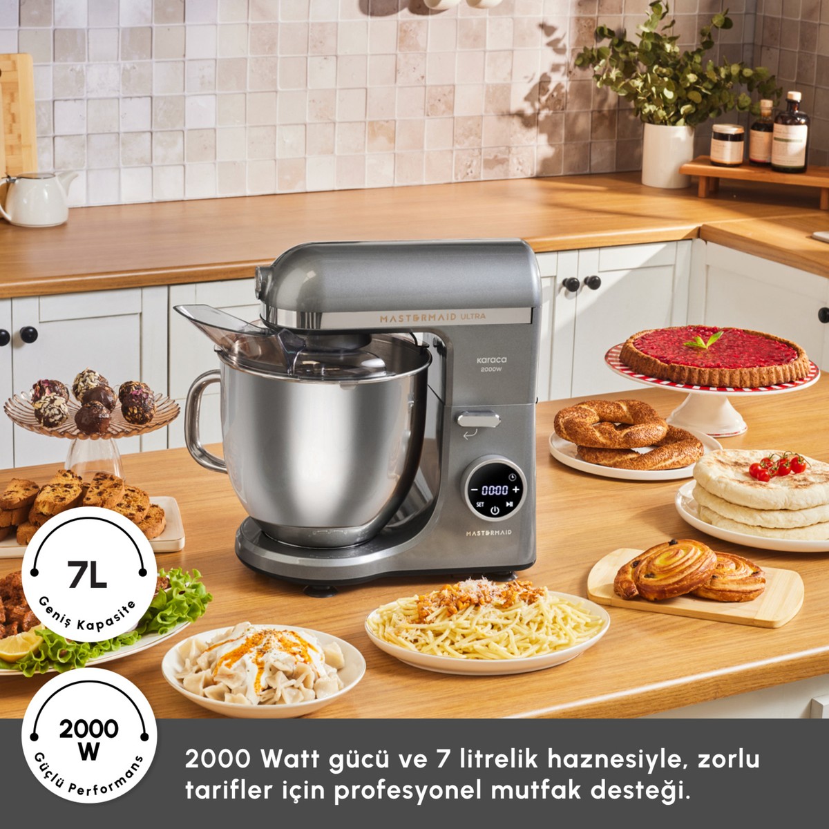 Karaca Mastermaid Chef Ultra D2000W Dijital Ekranlı Hamur Yoğurma Makinesi Galaxy Grey 7l