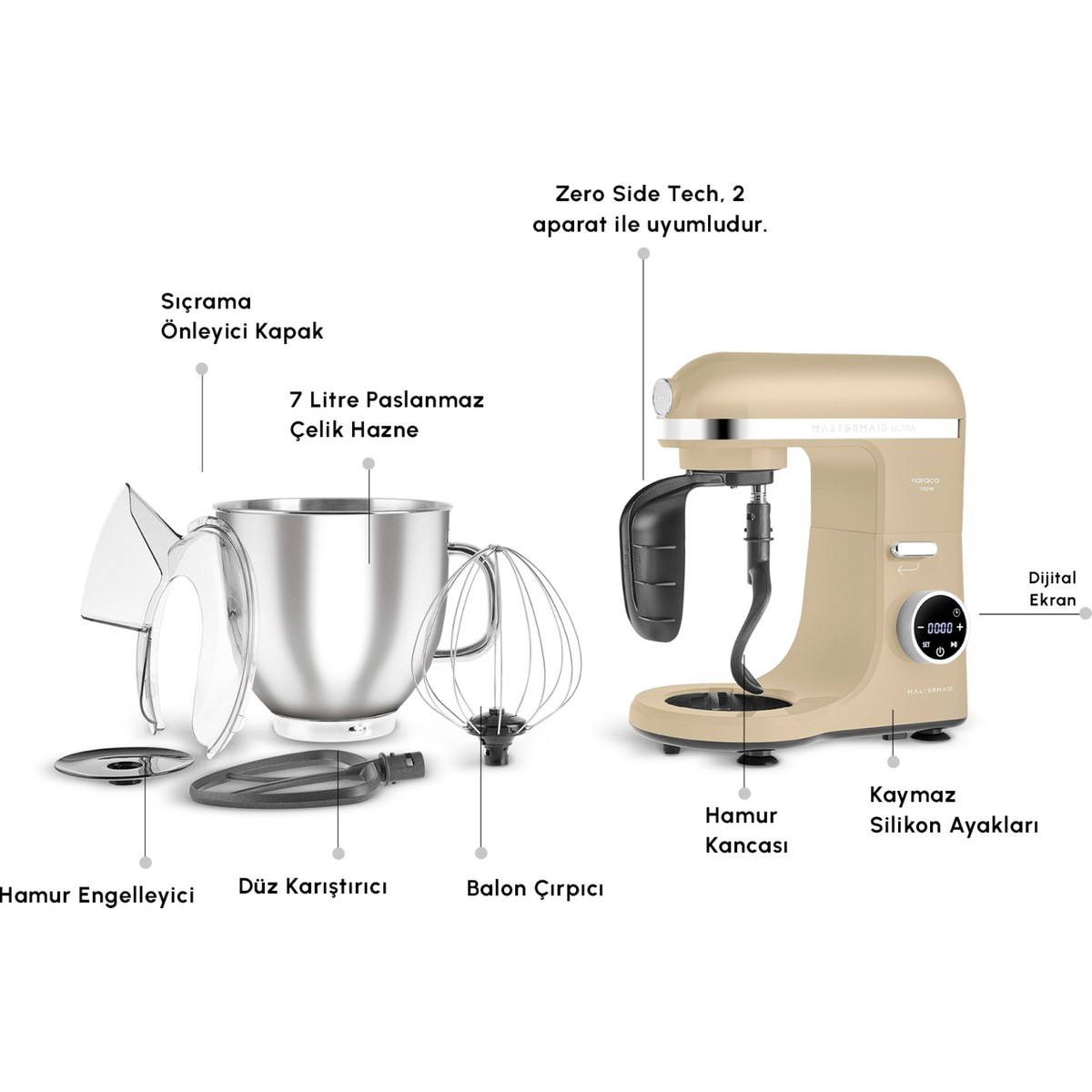 Karaca Mastermaid Chef Ultra D2000W Dijital Ekranlı Hamur Yoğurma Makinesi Mineral Gold 7L