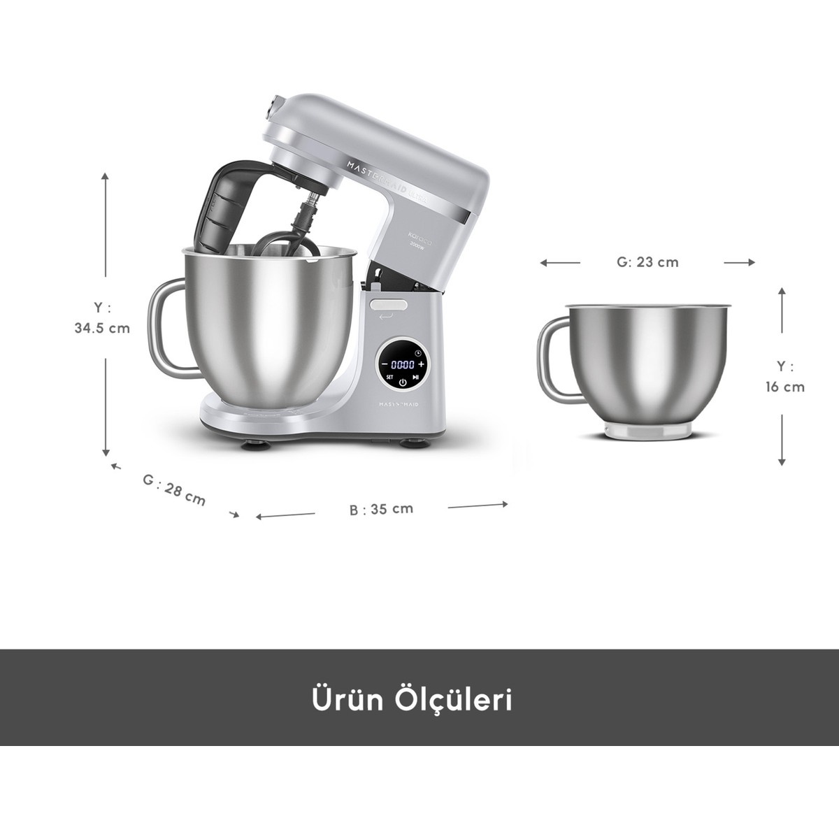 Karaca Mastermaid Chef Ultra D2000W Dijital Ekranlı Hamur Yoğurma Makinesi Silver 7L