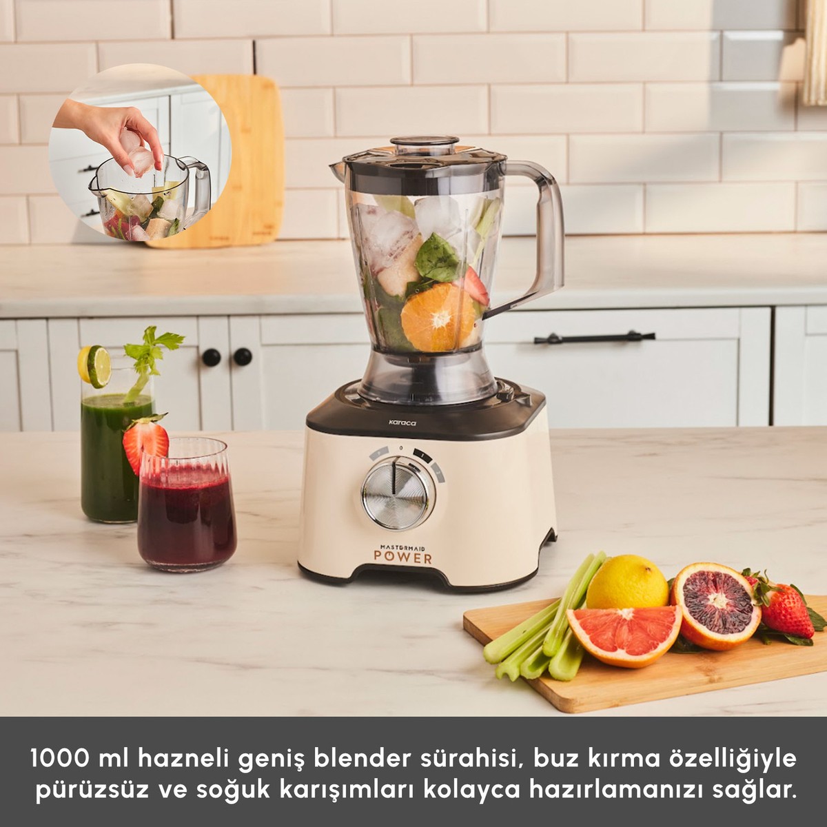 - 1000 ml hazneli blender sürahi ile buzları kırarak içeceklerinizi hızlıca hazırlayabilirsiniz.