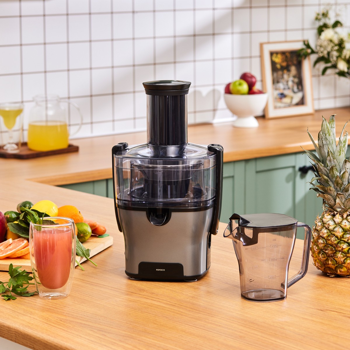 Ürün tezgahta çok yer kaplamıyor küçük boy elmayı vs bütün olarak atınca sıkıyor, portakal greyfurt vs sıkacağım zaman soyup bütün olarak attım. Diğerlerine göre en büyük avantajı bütün olarak atabilmek bence. Rengi gayet güzel.