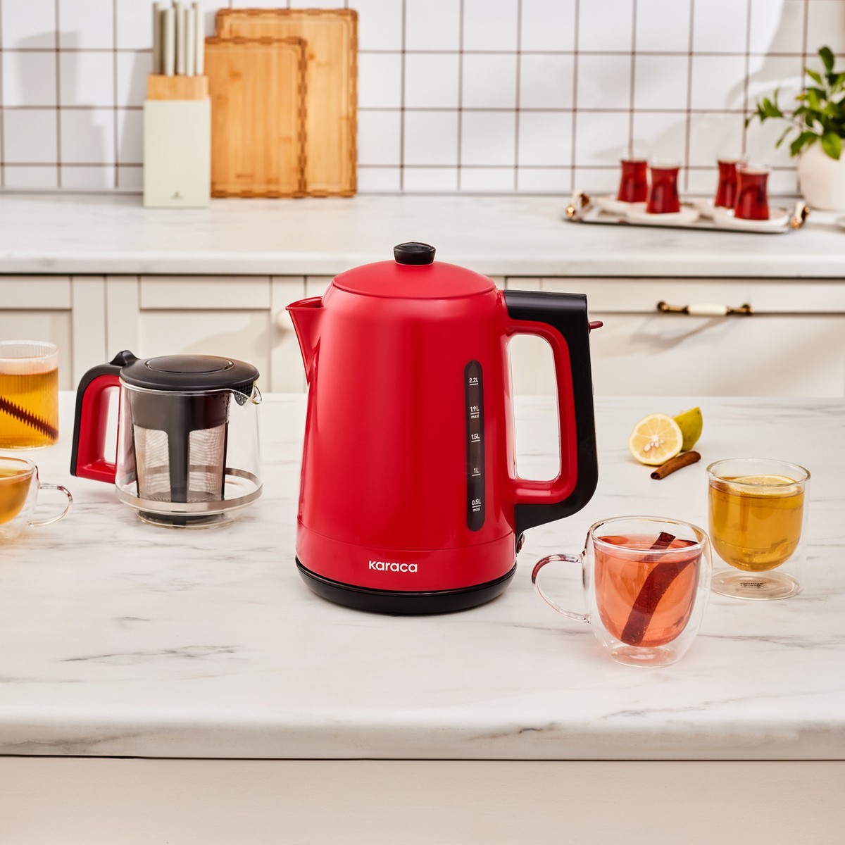 Karaca Mega Tea 1501 Cam Çay Makinesi Cherry Red 1500 W