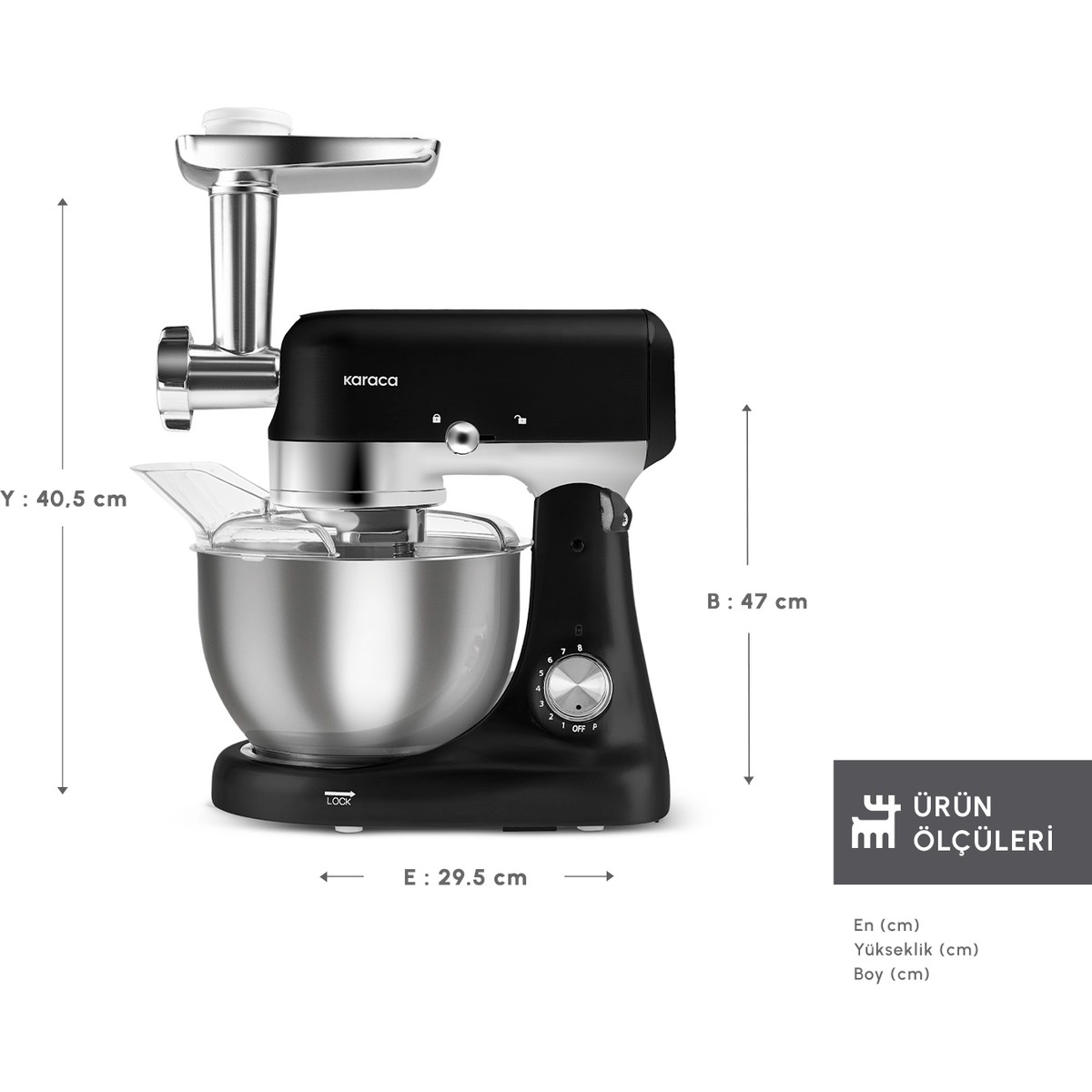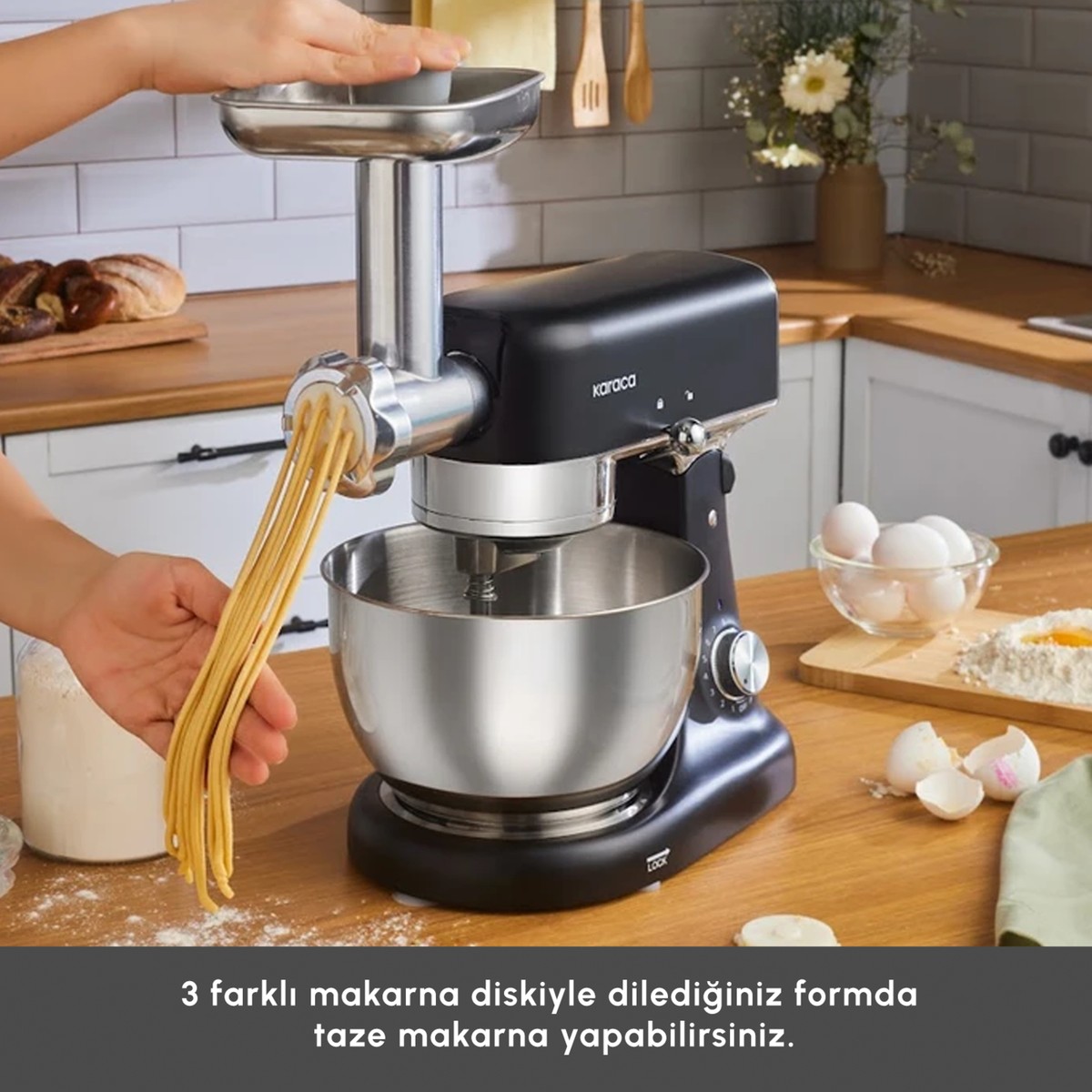 Karaca Multicast Plus Döküm Kıyma Çekme/Kurabiye Aparatlı Hamur Yoğurma Makinesi Black 1000w 5l