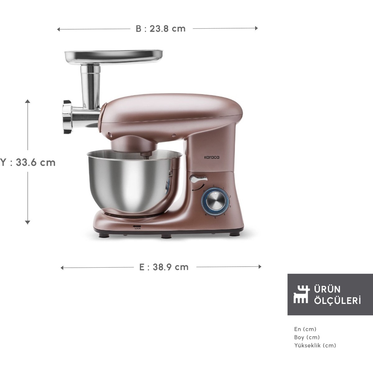 Karaca Multichef Stand Mikser Rosegold 1900W 5,5 Lt (Kıyma Çekme /Sucuk-Sosis/İçli Köfte Aparatlı)