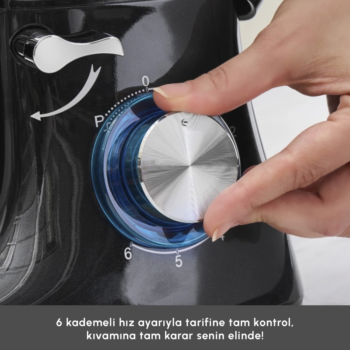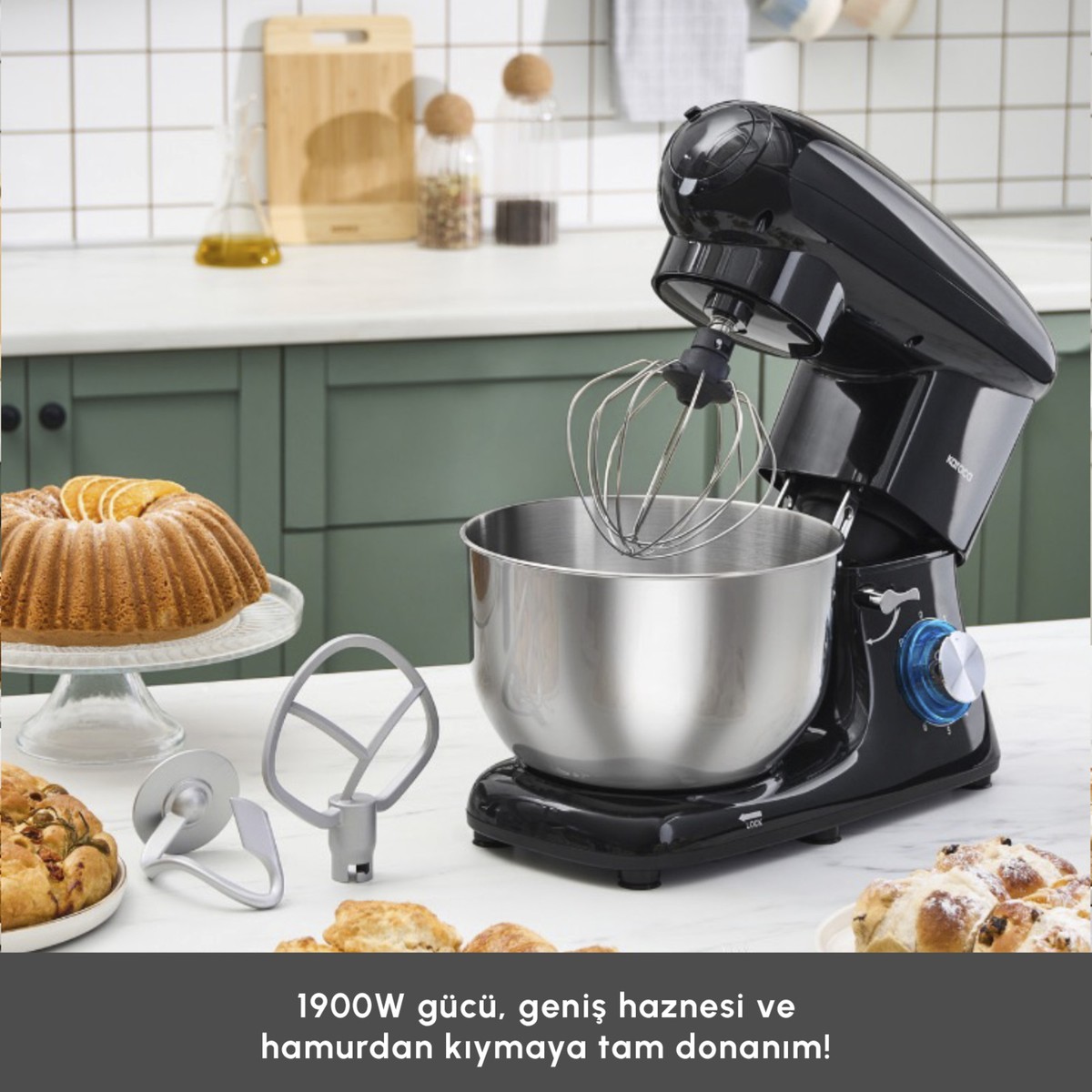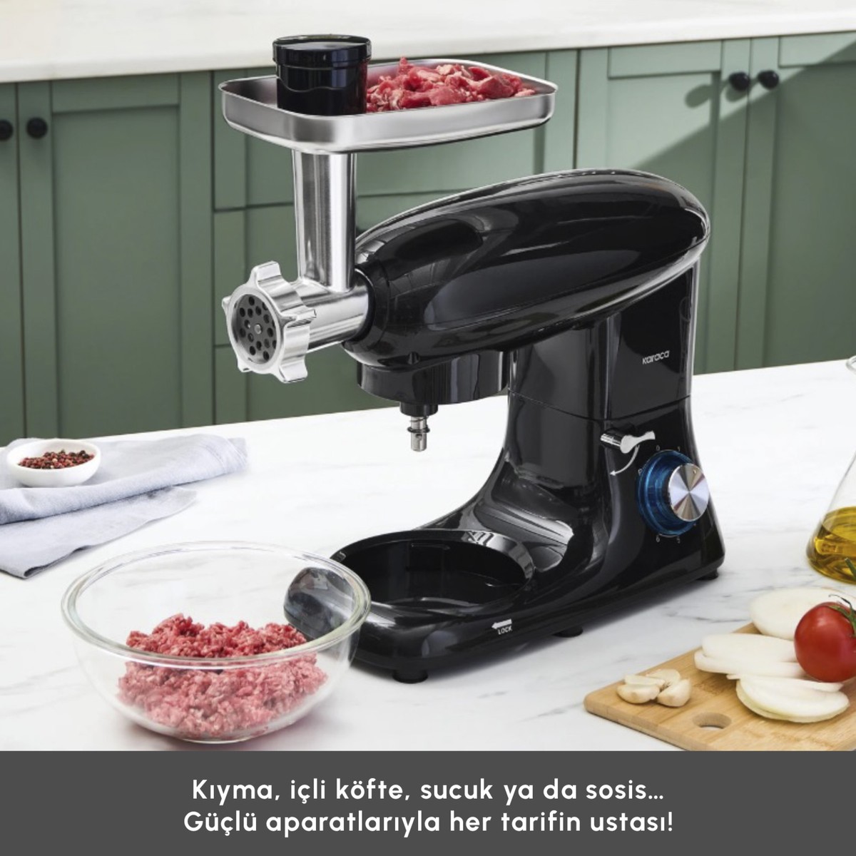 Karaca Multichef Stand Mikser Shiny Black Mutfak Şefi 1900W 5,5 Lt (Kıyma Çekme /Sucuk-Sosis/İçli Köfte Aparatlı)