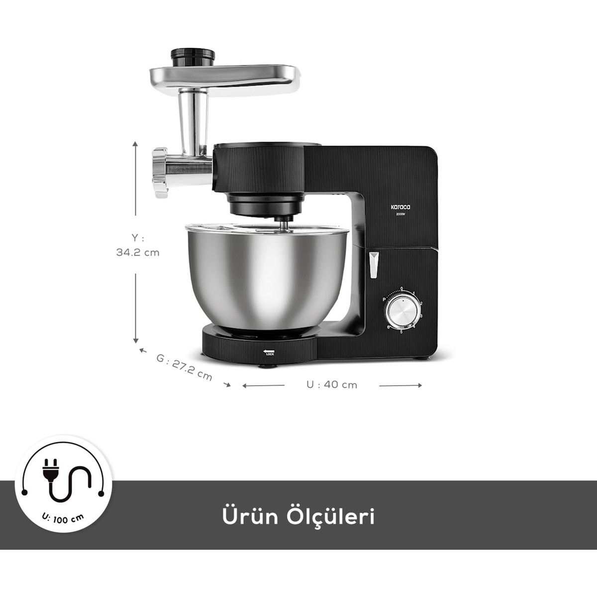 Karaca Multichef Ultra 2000 Watt 7 Litre Stand Mikser Black (Kıyma Çekme/sucuk-Sosis/içli Köfte Aparatlı)