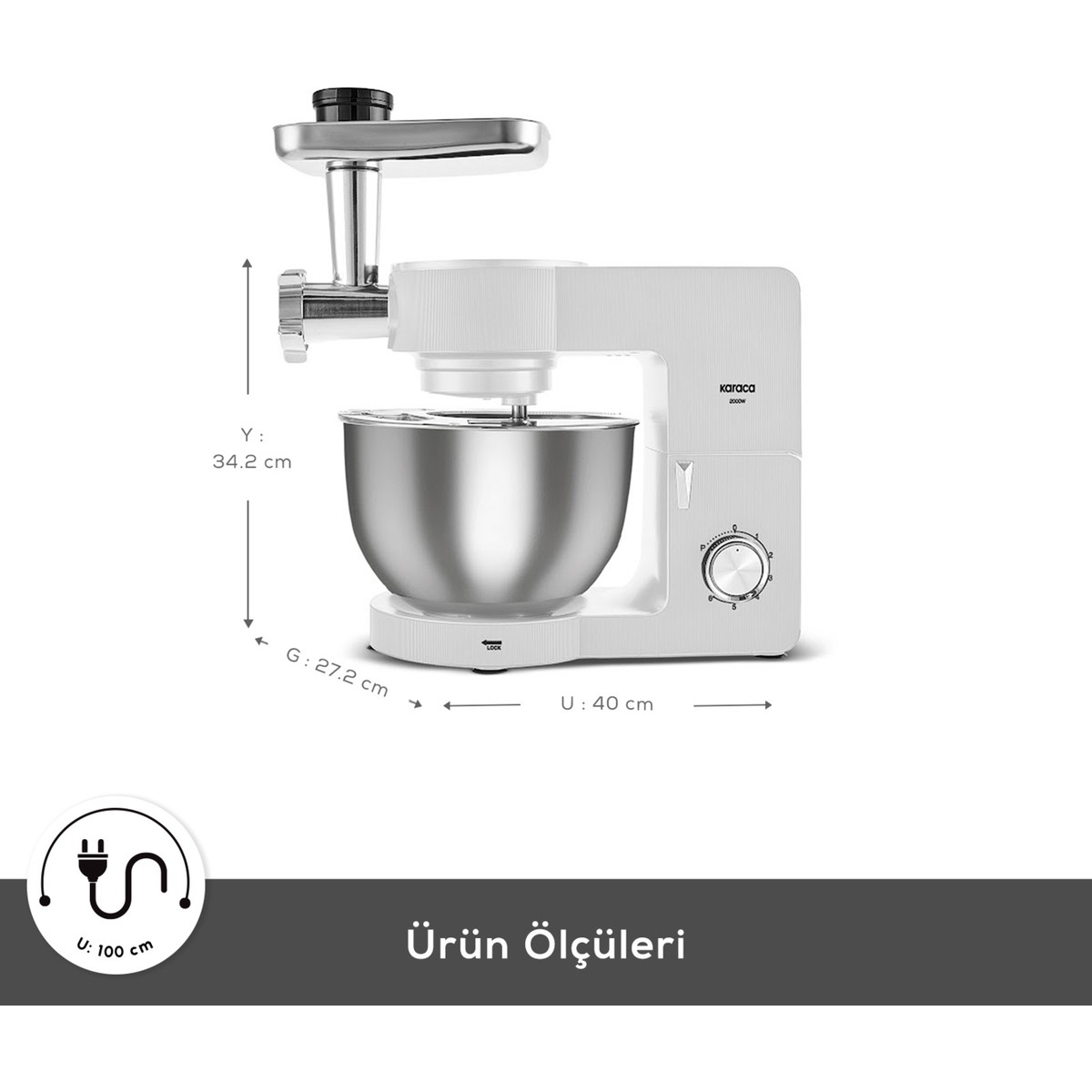 Karaca Multichef Ultra 2000W 7 Litre Stand Mikser Porcelain White (Kıyma Çekme/sucuk-Sosis/içli Köfte Aparatlı) için 1 değerlendirme