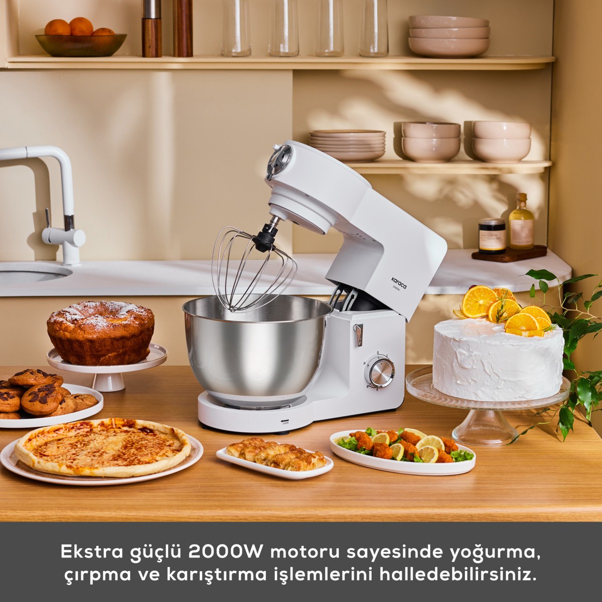 Karaca Multichef Ultra 2000W 7 Litre Stand Mikser Porcelain White (Kıyma Çekme/sucuk-Sosis/içli Köfte Aparatlı)