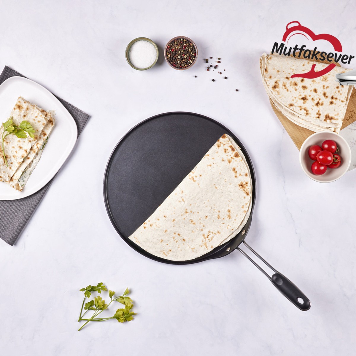 İlk kullanımlarımızda memnun kaldık. Uzun vadede kolay çizilme veya kaplama kalkması olmazsa tam aradığımız ürün olur. Bu genişlikte tavalar pek kolay bulunmuyor. Kalite açısından pazar yerlerinde satılan markasız ürünleri de tercih etmek sağlık açısından riskli olabilir. Börek, lavaş yapımında kullandık. Genişliği gerçekten rahatlattı.