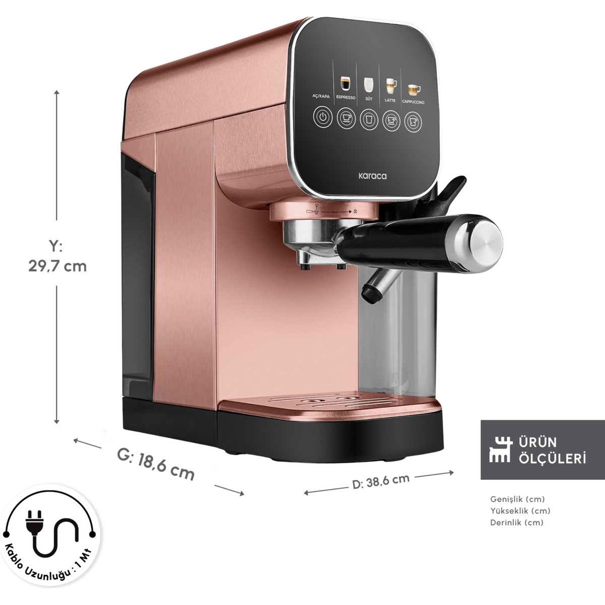 Karaca Mycaffee Barista S20 Entegre Süt Hazneli Otomatik Espresso Ve Latte Makinesi Copper
