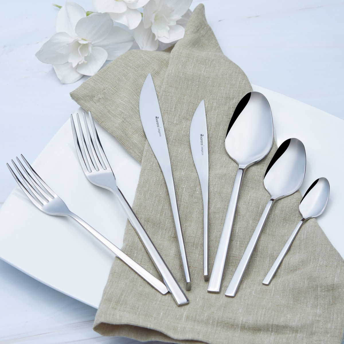 MAĞAZADA GÖRÜP BEĞENMİŞTİM. SADELİĞİYLE TÜM TAKIMLARIMA YAKIŞTI. ÖZELLİKLE BIÇAKLARIN TASARIMINA BAYILDIM. SİPARİŞTEN SONRAKİ GÜN TESLİM EDİLDİ.