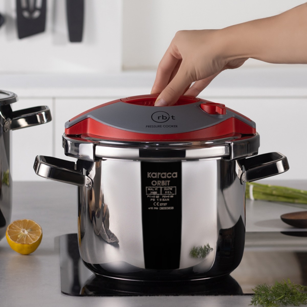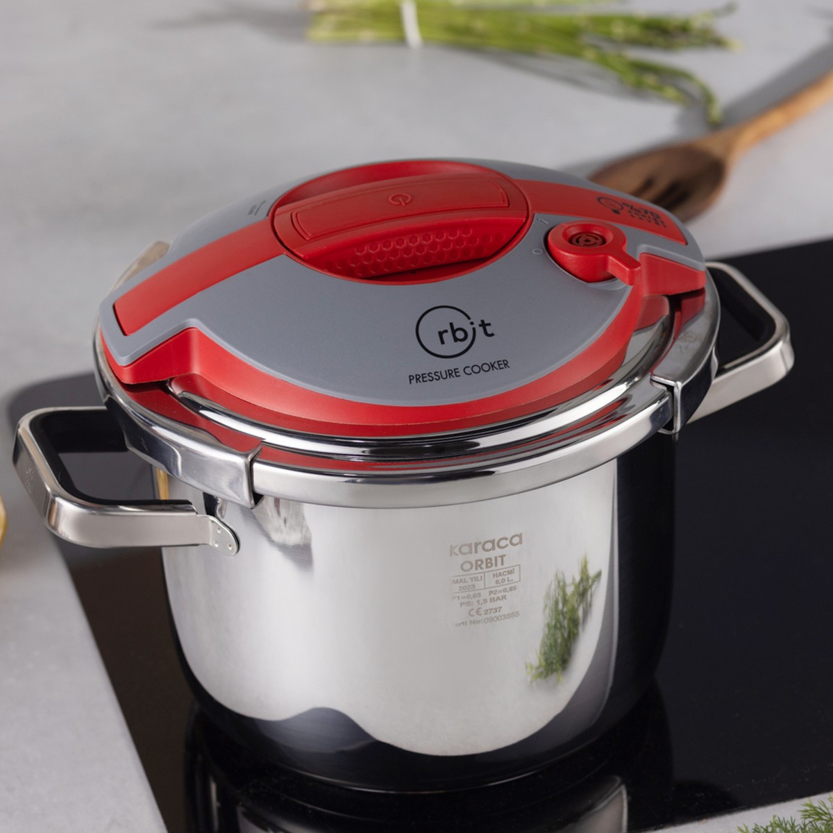 Karaca Orbit Indüksiyon Tabanlı Düdüklü Tencere Seti 6+8 L Kırmızı