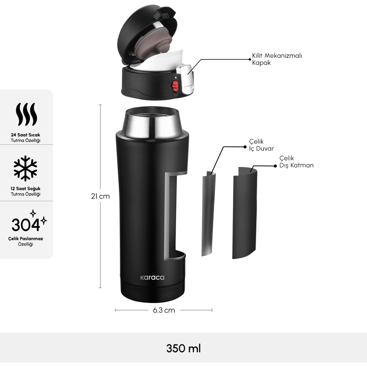 Karaca Pluton Çelik Sızdırmaz Termos 350 Ml Siyah