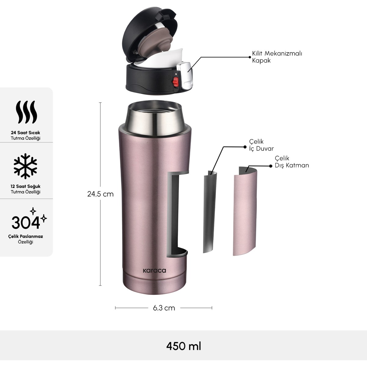 Karaca Pluton Çelik Sızdırmaz Termos 450 Ml Rose Gold