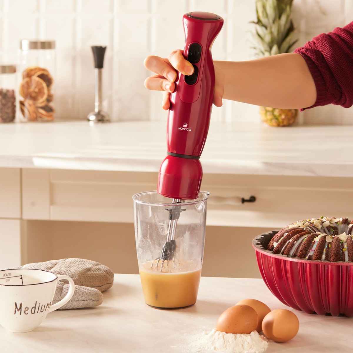 ikili çelik mikser uçları sayesinde kek hamuru, krema, bebek maması, mayonez, milkshake vb. hızlıca hazırlama imkanı sunar.