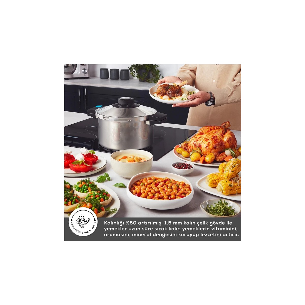 • Geliştirilmiş basınç sistemi ile 7 dakikada nohut pişirebilirsiniz.