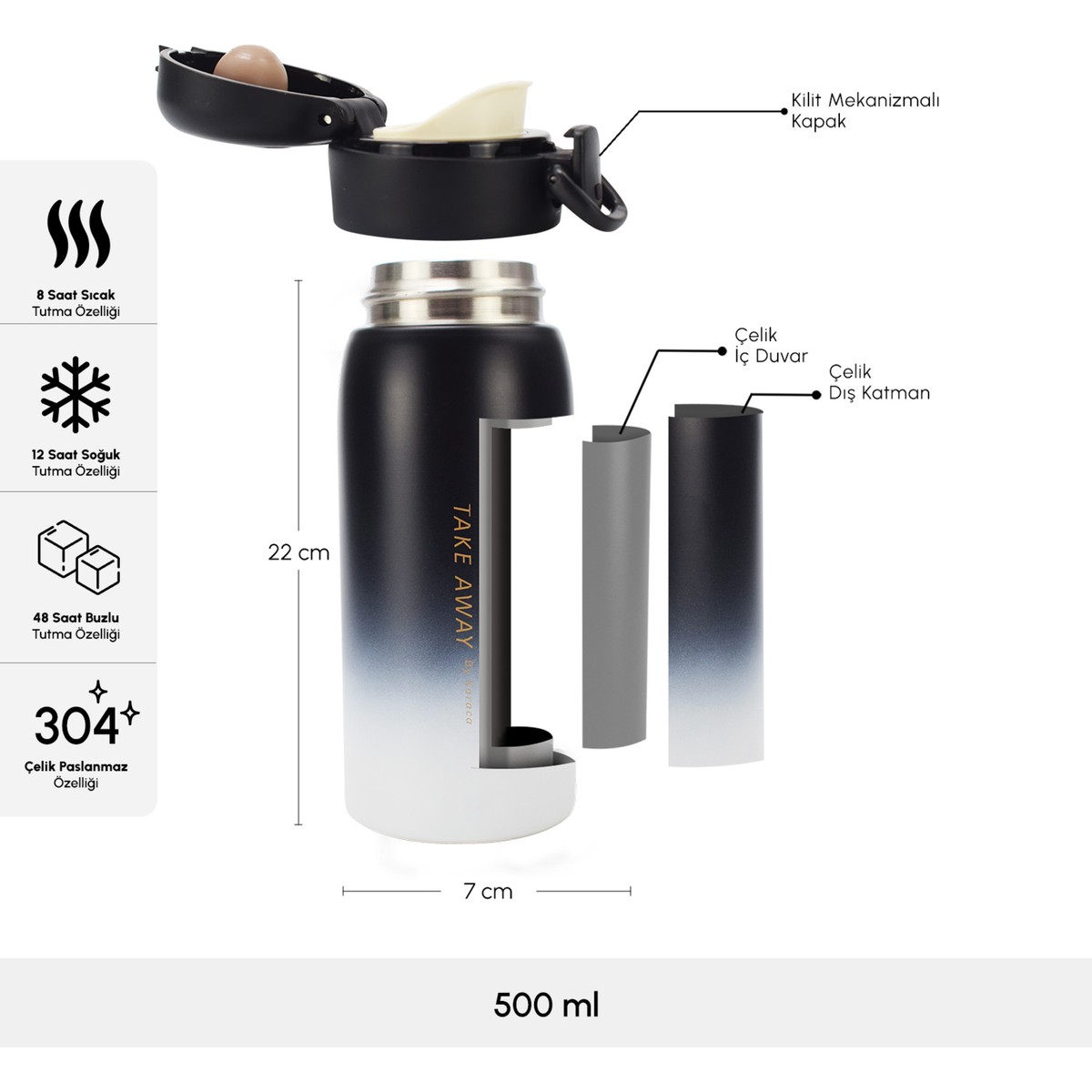 Karaca Skyfall Çelik Sızdırmaz Termos 500 ml Siyah