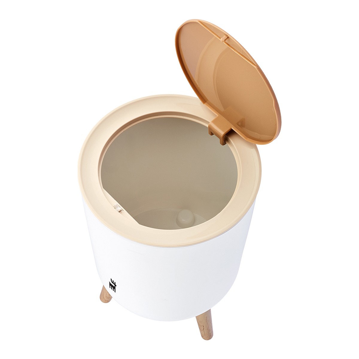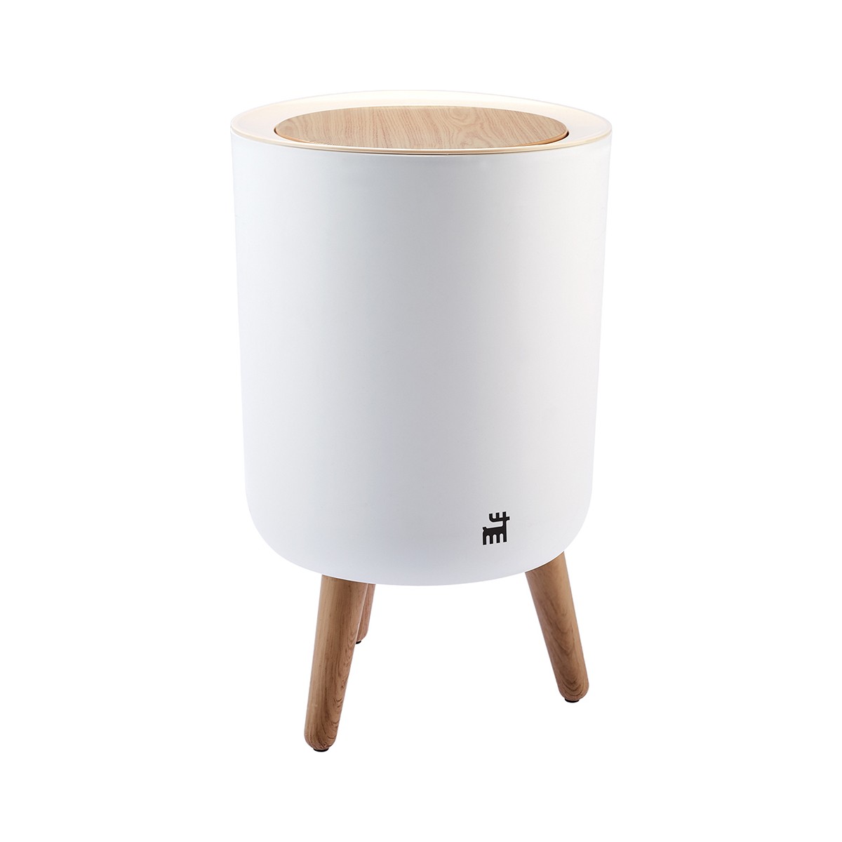 Ayakları ve kapağı ahşap/bambu görünümlü plastik. Fakat çok güzel tasarım ve kalite. Çok sevdim