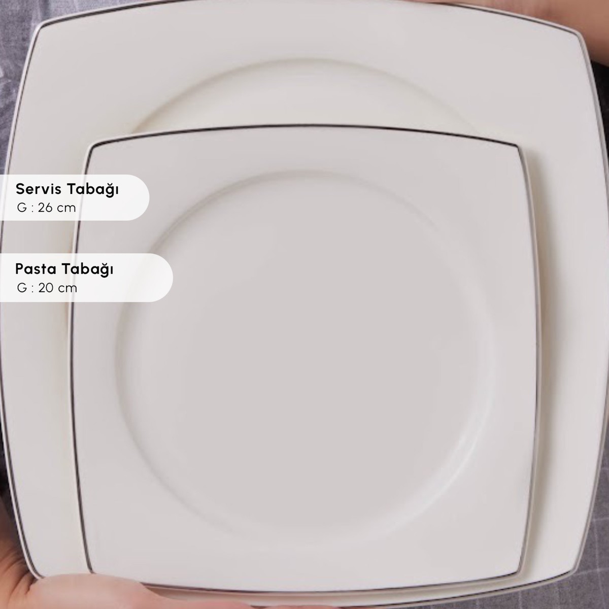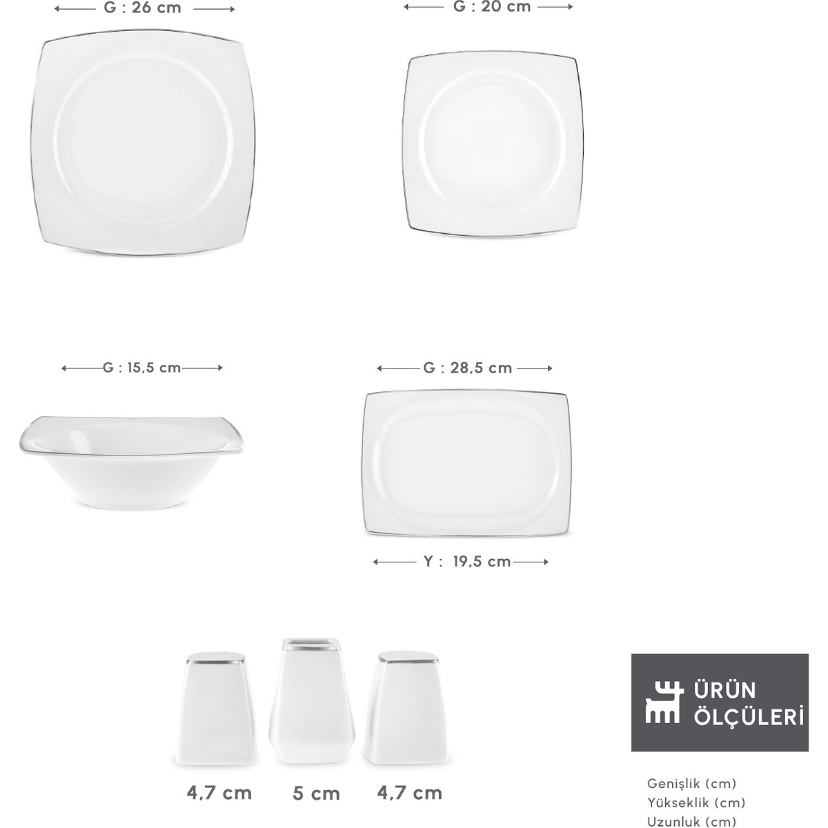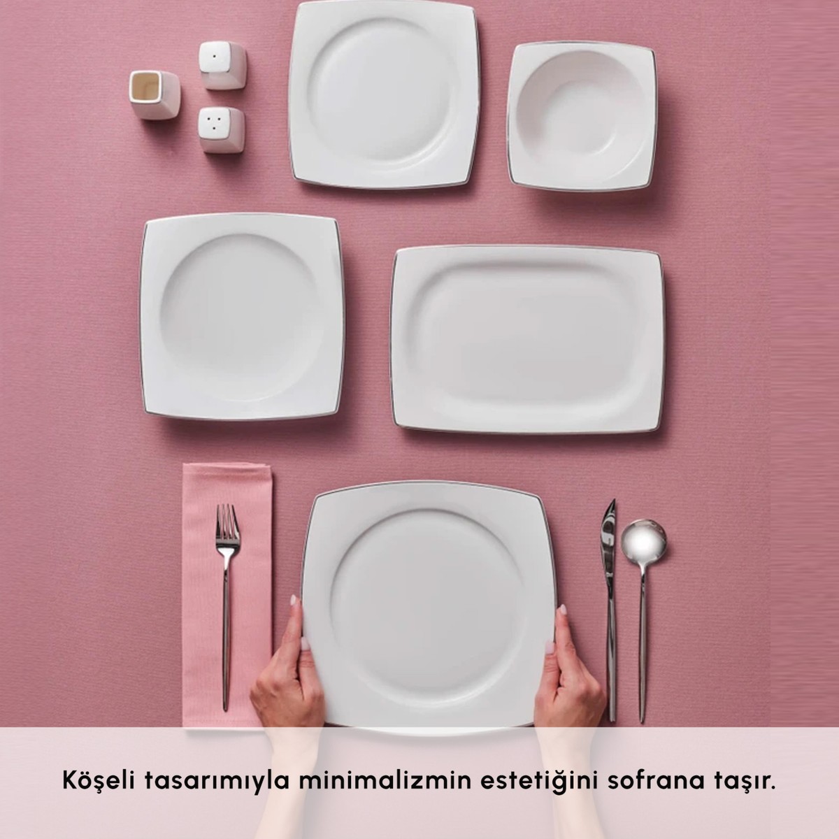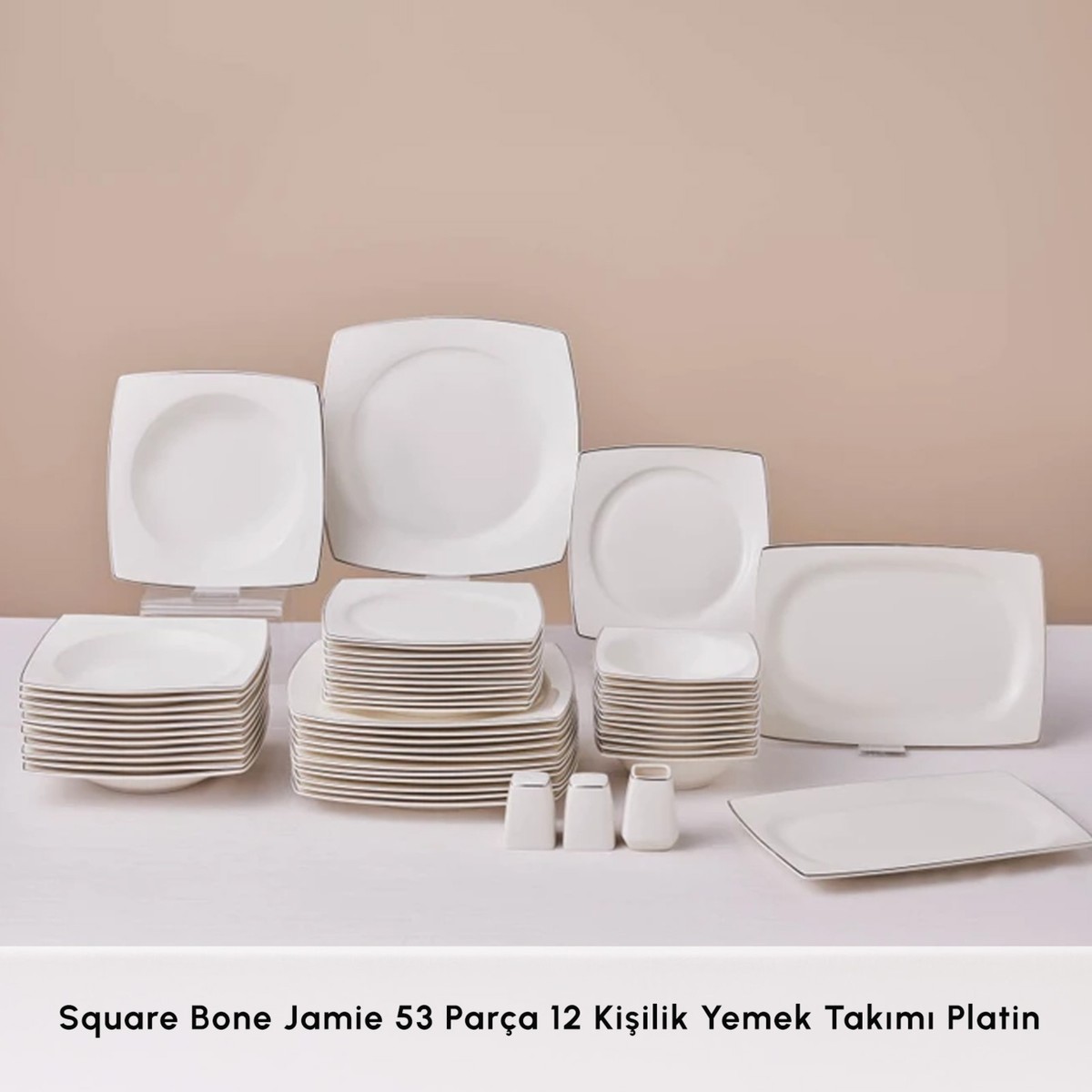 Karaca Square Bone Jamie 53 Parça 12 Kişilik Yemek Takımı Platin