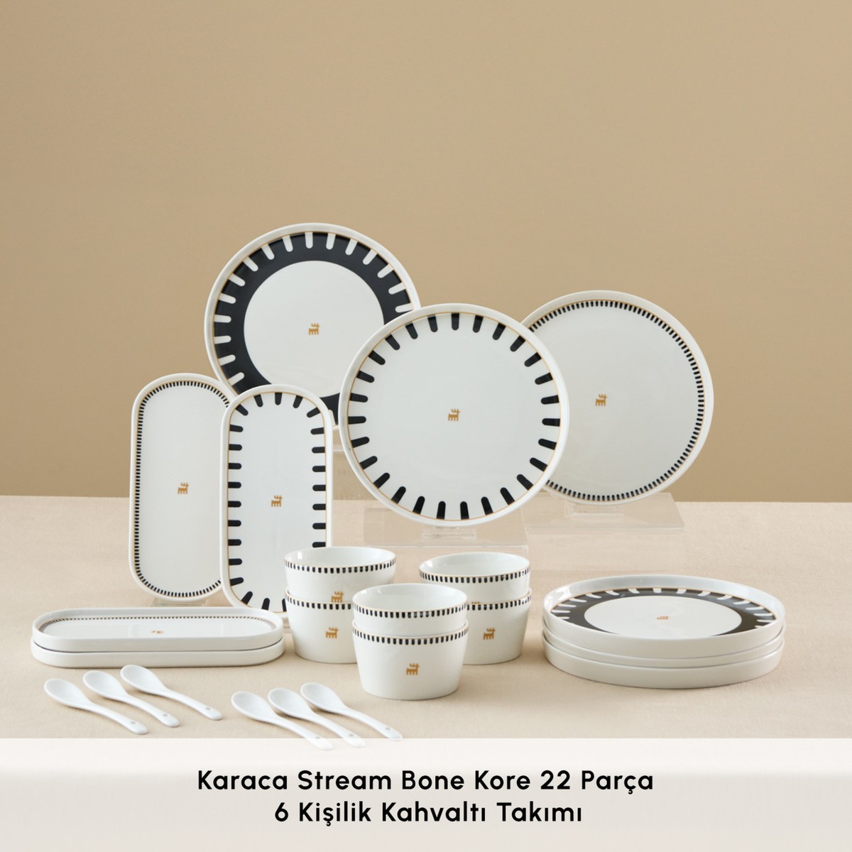 Karaca Stream Bone Kore 22 Parça 6 Kişilik Kahvaltı Takımı