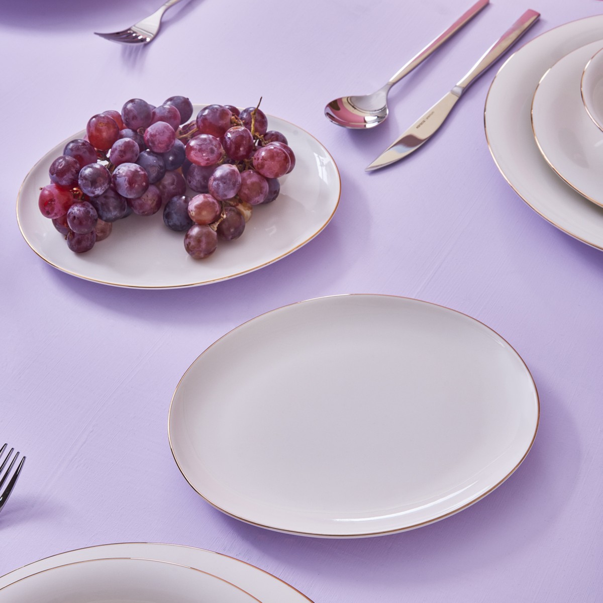 Şıklığın doruk noktası Stream Bone, ikonik tasarımlarıyla sofralarınızdaki yerini alıyor… Stream Bone Serisi, yumuşak hatlara sahip akışkan tarzıyla minimal sofralar için idealdir. Modern dokunuşlara sahip kenarları, akıcı çizgiler oluşturur. Dinamik sofralar kurmak isteyenlerin vazgeçilmezi olacak Stream Bone, sunumunuza şık ve enerjik bir hava getirir. Stream Bone’un ikonik şıklığını keşfedin. Karaca Streamline Realto 60 Parça 12 Kişilik Fine Bone Yemek Takımı Gold Set İçeriği Malzeme: Fine Bone 12 Adet Servis Tabak (27 cm) ; 12 Adet Yemek Tabak (21,5 cm) ; 12 Adet Pasta Tabak (21 cm) ; 12 Adet Kase (15 cm) ; 1 Adet Küçük Kayık Tabak (22 cm) ; 2 Adet Büyük Kayık Tabak (29 cm) ; 1 Adet Çorbalık ; 1 Adet Çorbalık Kapağı ; 2 Adet Tuzluk ; 2 Adet Biberlik ; 2 Adet Kürdanlık ; 1 Adet Peçetelik ;