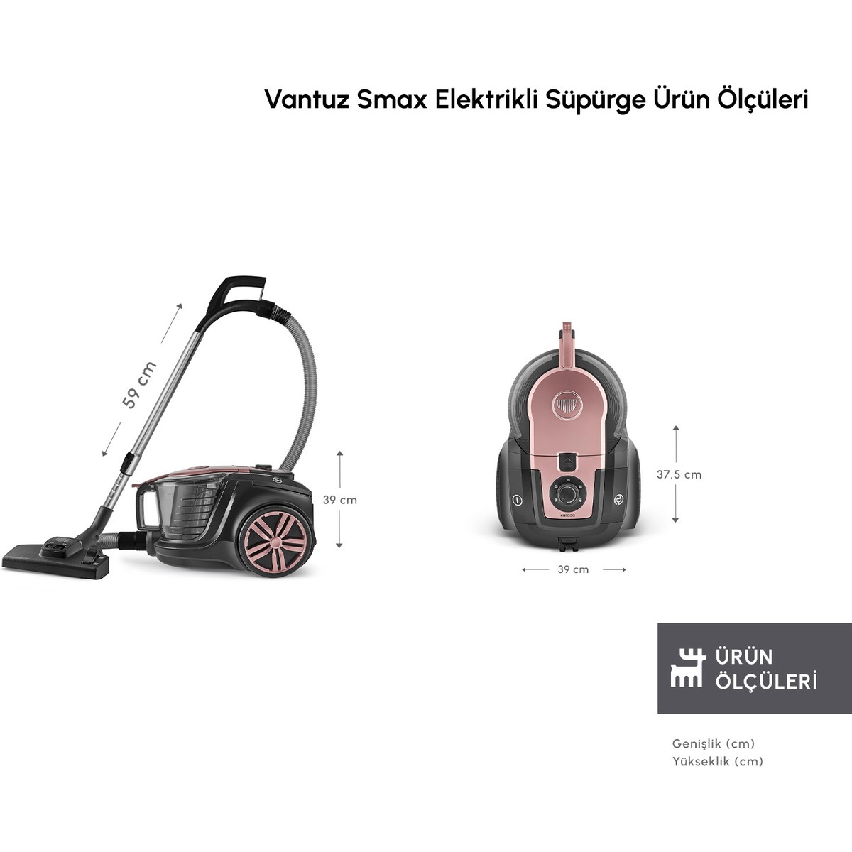 Karaca Vantuz Smax Geniş Toz Hazneli Elektrikli Süpürge Rosegold 2.8 L
