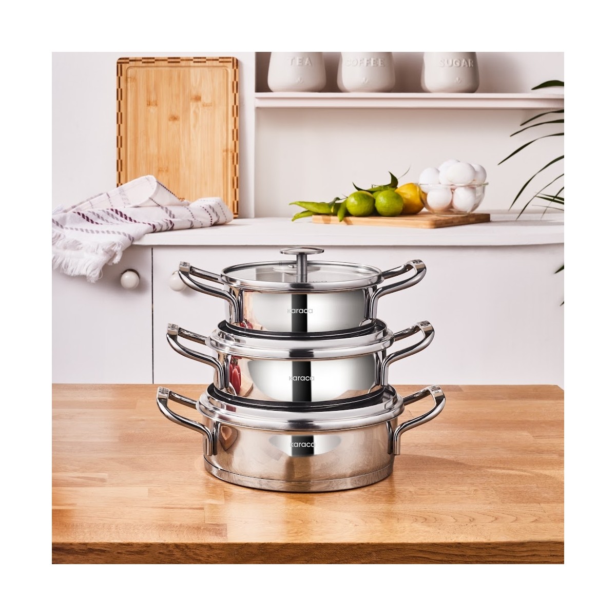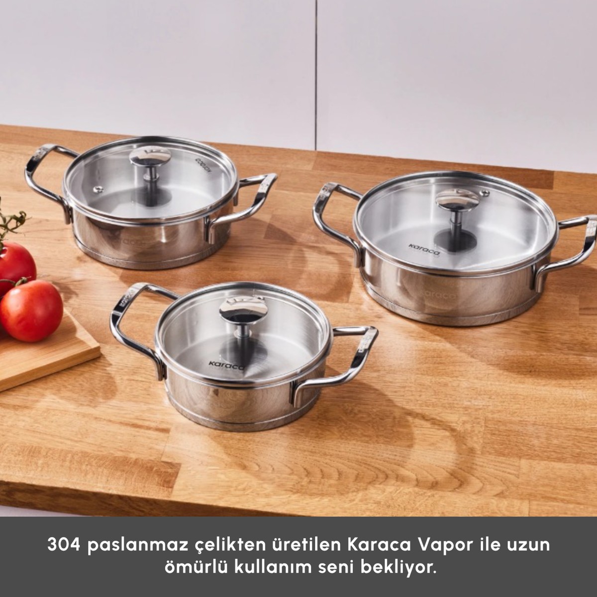 Karaca Vapor New İndüksiyon Tabanlı 6 Parça Sahan Çelik Tencere Seti