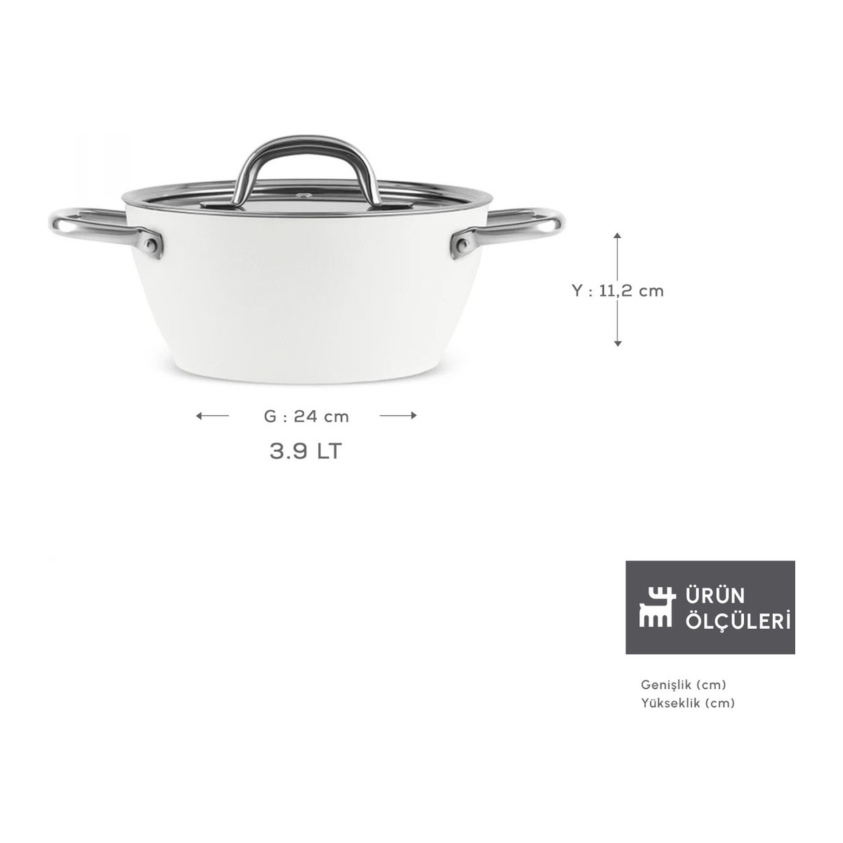 Karaca x Refika Birgül Swiss Crystal Metal Kulplu Tencere 24 cm Creamy