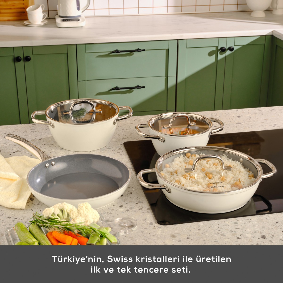 Karaca x Refika Birgül Swiss Crystal Metal Kulplu Tencere 24 cm Creamy için 4 değerlendirme