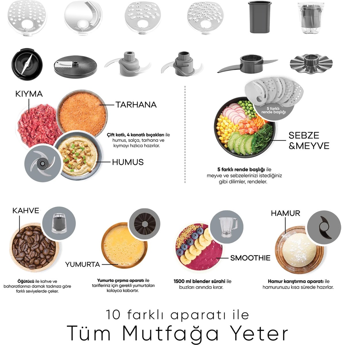 Karaca x Refika Mastermaid Power 10 In 1 Mutfak Robotu Swiss Cream 2000W için 25 değerlendirme
