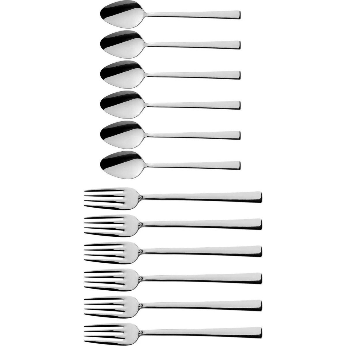 Kitchen Design Lab Parlak Gümüş Tatlı Çatal ve Kaşık Seti – 12 Adet Kahvaltı Pasta Tatlı Çatal Kaşık Seti Kutulu Set