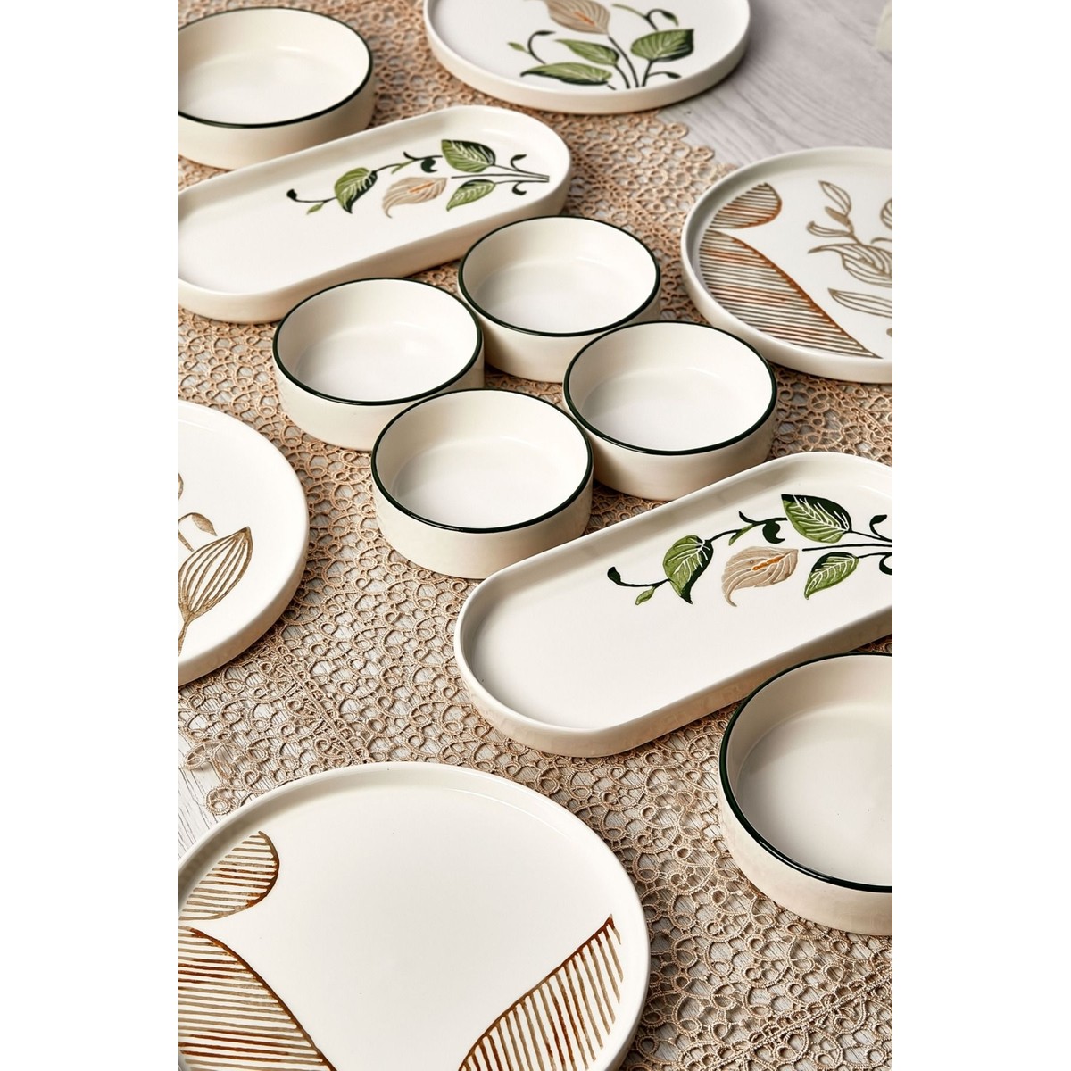 Kitchen Life 14 Parça 6 Kişilik Barış Çiçeği Stackable Kahvaltı Takımı – Kahvaltılık ;Paket İçeriği :6 Adet 19 cm Stackable Tabak , 2 Adet Kayık Tabak 25x11x3,5cm, 4 Adet Reçellik Zeytinlik Çapı : 10,5cm Yükseklik : 3,5 cm , 2 Adet Büyük Peynirlik kase Çap: 13 cm Yükseklik 3,5 cm ;Üst üste istiflenebilir.; ;Ürün yapımı esnasında 3 defa fırınlama işlemi yapılmıştır.; ;Tabaklar tek tek el işçiliğiyle fırça ve sünger darbeleriyle boyanmıştır.; Bu yüzden size ulaşacak tabağın bir eşi daha bulunmamaktadır.; ;Üzerindeki desenler 2 kat sır altındadır ve fırında 1200 derecede piştikten sonra tekrar parlak bir şekilde sırlanmıştır.; Bu sayede bulaşık makinenizin normal ayarında yıkanabilir.; ;İade Koşulları: Ürünlerinizin tarafınıza ulaştığı şekilde patpata sarılı, kutulu ve ambalajı bozulmamış olarak iade edilmesi gerekmektedir.; Aksi halde gönderilen iadeler kabul edilemeyecektir.