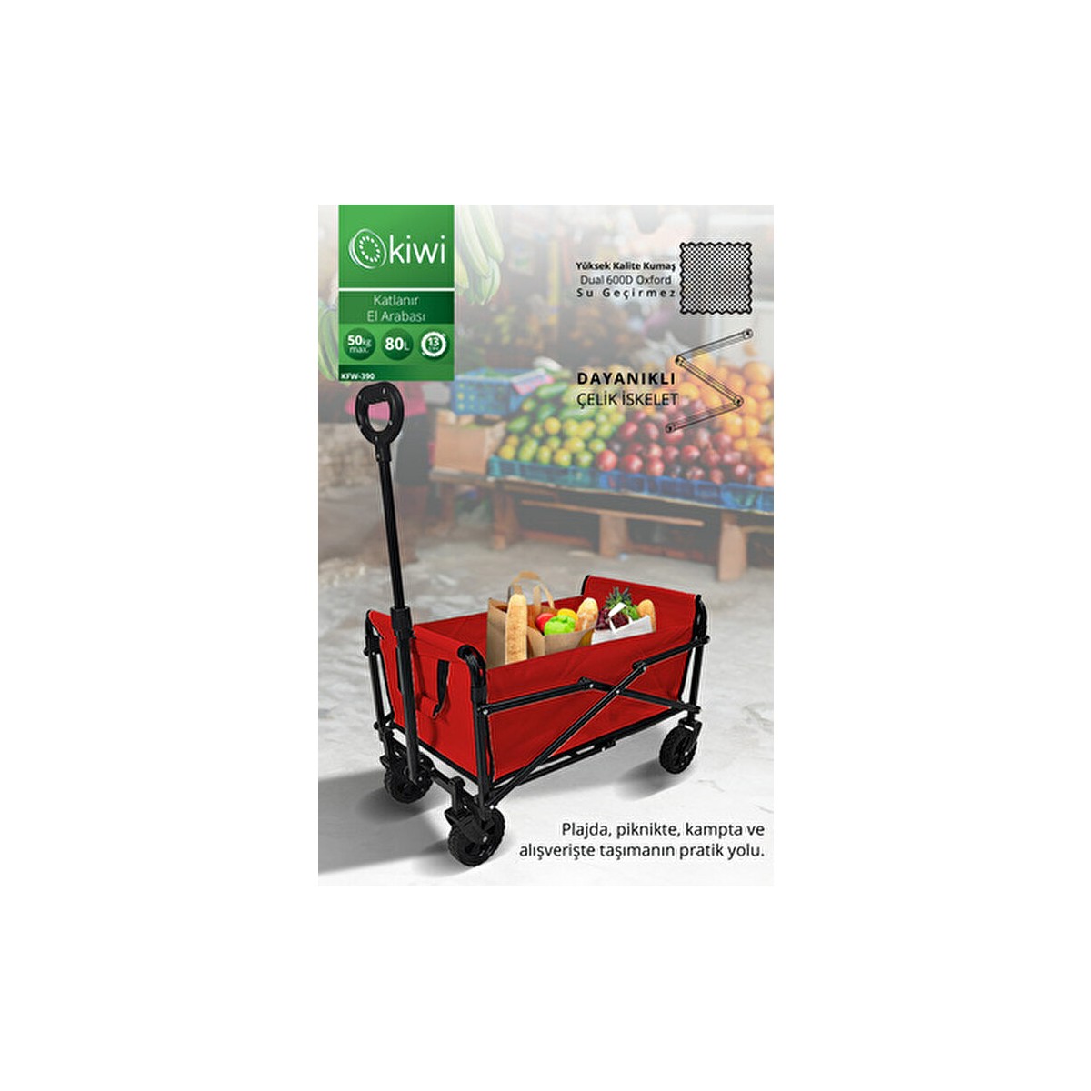Kiwi KFM-390 Katlanır Portatif Taşıma Aracı — plaj, piknik, kamp ve alışveriş gibi farklı ortamlarda yüklerinizi kolayca taşımanızı sağlar. Katlanabilir yapısı ile yerden tasarruf sunar ve pratik kullanım imkanı verir.