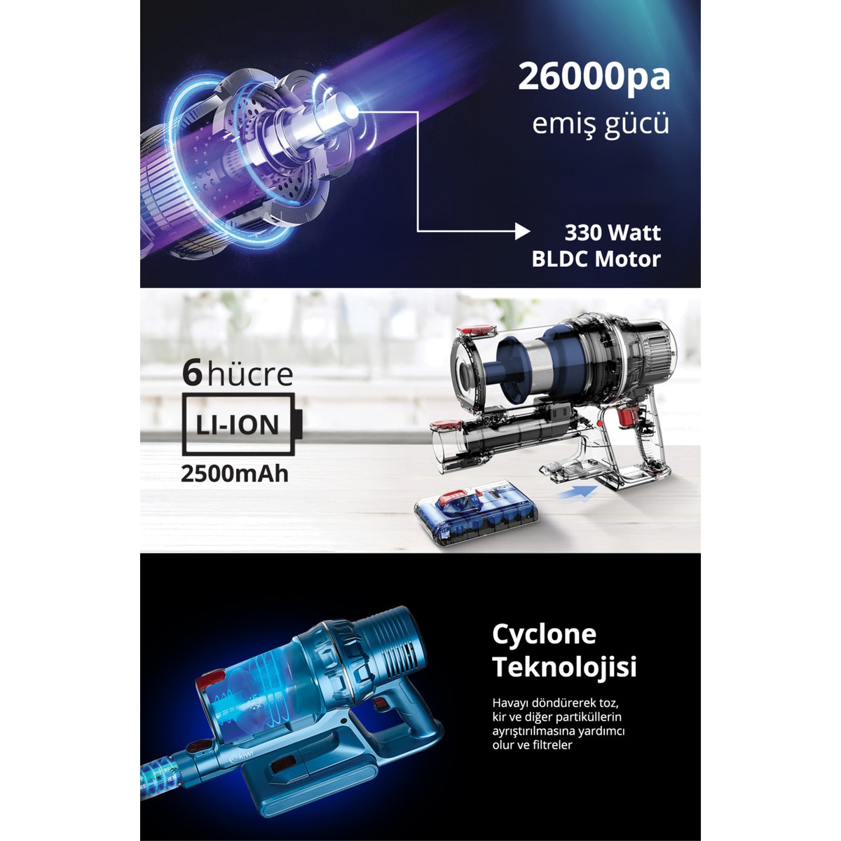 Fiyat performans olarak alabileceğiniz en iyisi diyebilirim. Yorumlara bakarak aldim fiyatından dolayi beklentim yoktu özellikle mutfakta her an elimde odalarda da ufak tefek döküntüler ve tozlari almak için kullaniyorum şarji hizli bitiyor denilmis evet ama çok derin bir temizlik icin almamistim zaten ben cok memnun kaldim.