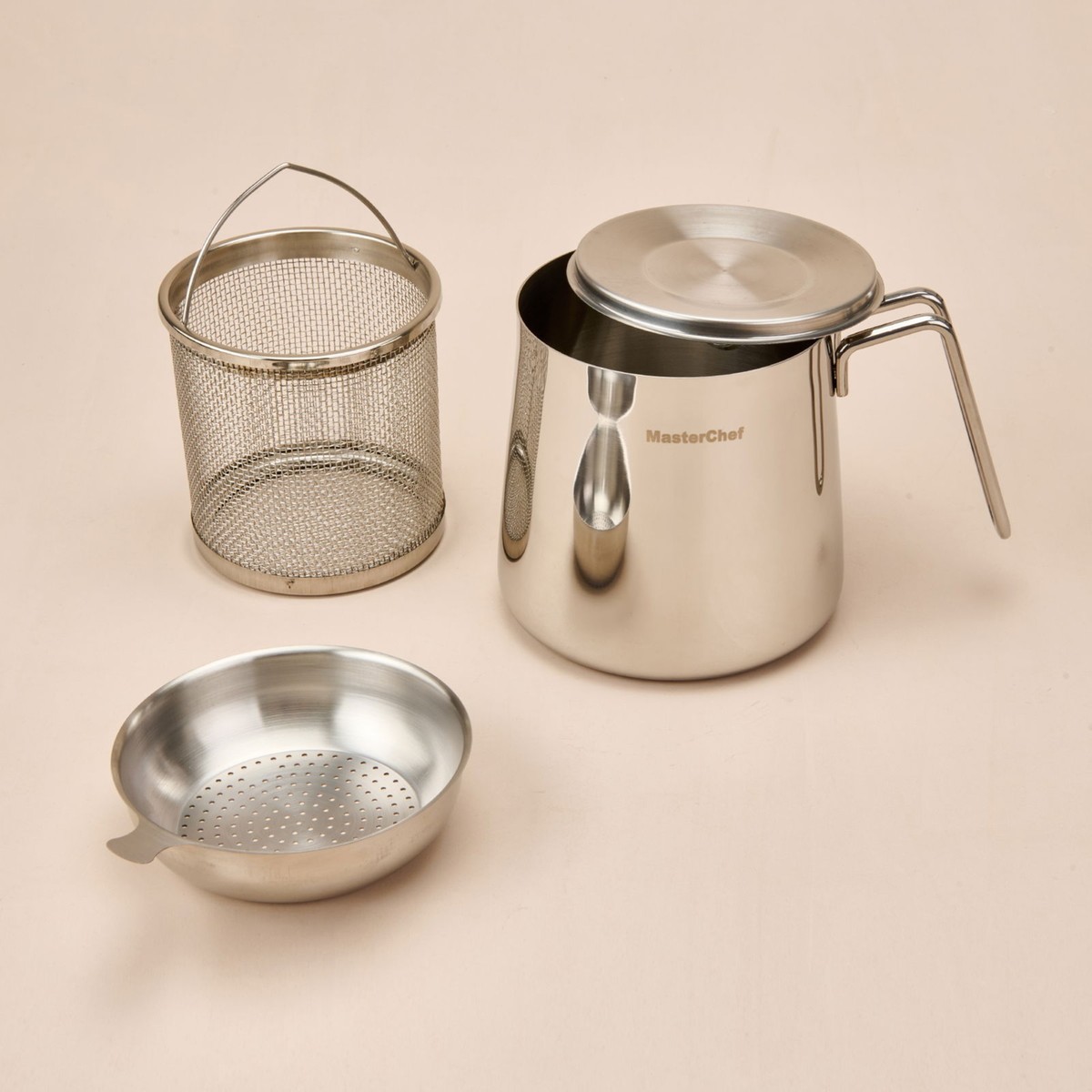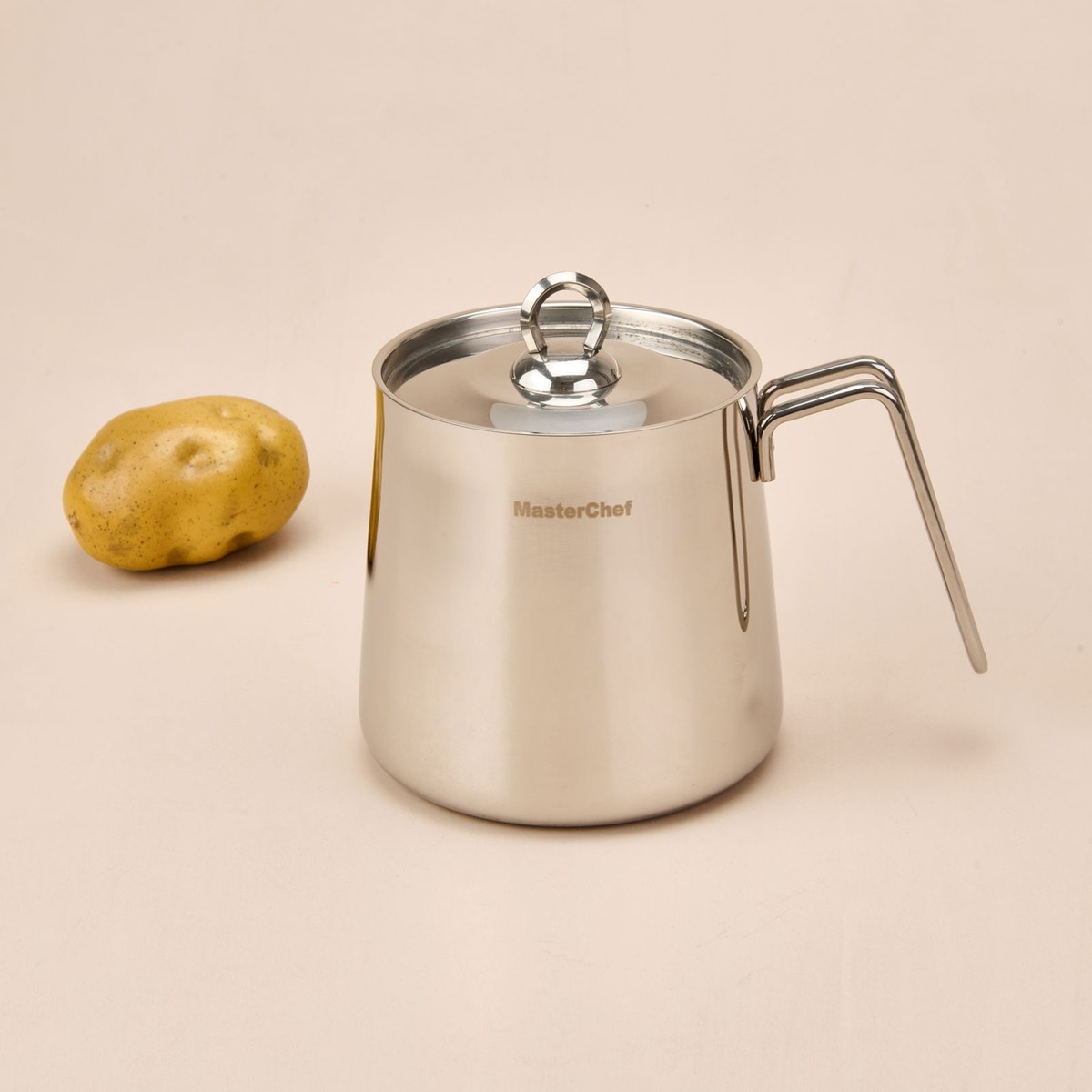Ürün ÖzellikleriMalzeme/Materyal: Paslanmaz ÇelikÖlçü: 13×18 cmRenk: GriMenşei: TÜRKİYEMasterChef Kızartma Potu, mutfağınızda profesyonel sonuçlar elde etmeniz için tasarlanmış pratik ve kullanışlı bir kızartma yardımcısıdır. Özel formu sayesinde yağ sıçramalarını minimuma indirirken, ısıyı dengeli şekilde dağıtarak yiyeceklerin dışı çıtır, içi yumuşak kalacak şekilde mükemmel pişirme sağlar.Dayanıklı gövde yapısı, yüksek sıcaklıklara karşı dirençlidir ve uzun ömürlü kullanım sunar. Ergonomik sapı sayesinde güvenli tutuş sağlar, yanmaz kaplaması ile temizliği de oldukça rahattır.Kullanım ve Bakım Bilgileri• Makinede yıkanabilir.•